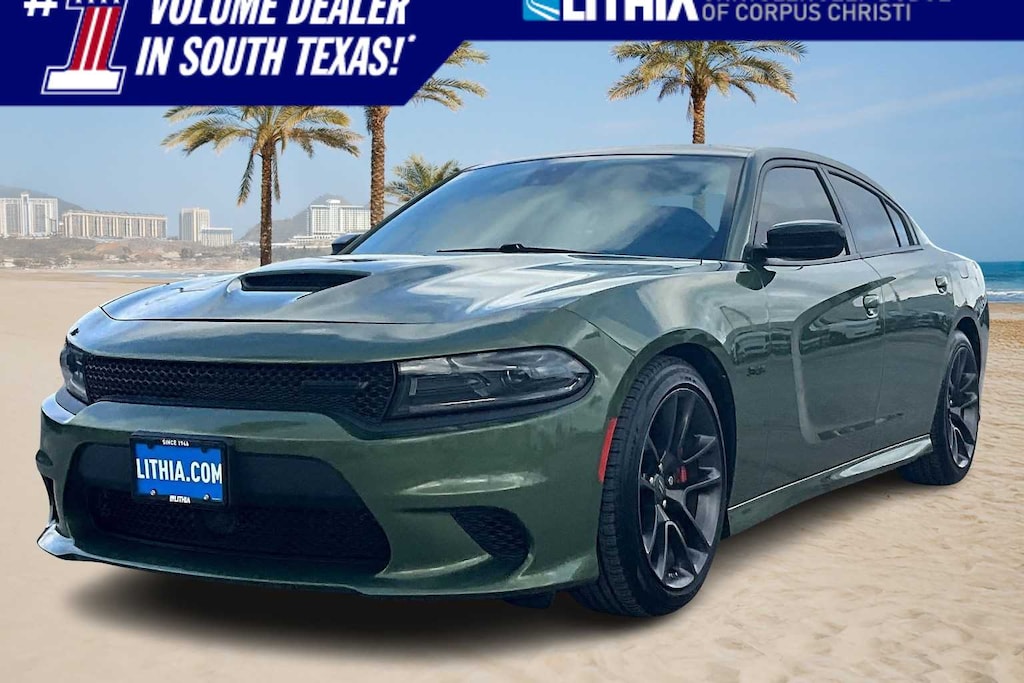FRESH OIL CHANGE, Black Cloth, 1-Yr SiriusXM Guardian Trial, 2-Piece Shark Fin Antenna, 4-Wheel Disc Brakes, 4G LTE Wi-Fi Hot Spot, 6 Speakers, 8.4 Touchscreen Display, ABS brakes, Adaptive Cruise Control w/Stop, Advanced Brake Assist, Air Conditioning, All Speed Traction Control, Alloy wheels, AM/FM radio: SiriusXM, Anti-whiplash front head restraints, Apple CarPlay, Apple CarPlay/Android Auto, Auto High Beam Headlamp Control, Auto-dimming Rear-View mirror, Automatic temperature control, Black 1-Piece Performance Spoiler, Black Dodge Grille Badge, Blacktop Package, Blacktop R/T Badge, Brake assist, Brake Calipers - Red, Brembo 4-Piston Fixed Caliper Brakes, Bumpers: body-color, Cloth Performance Seats, Compass, Delay-off headlights, Driver door bin, Driver vanity mirror, Dual front impact airbags, Dual front side impact airbags, Electronic Stability Control, Emergency communication system: SiriusXM Guardian, Flat-Bottom Steering Wheel, For Details, Visit DriveUconnect.com, Four wheel independent suspension, Front anti-roll bar, Front Bucket Seats, Front Center Armrest, Front dual zone A/C, Front License Plate Bracket, Front reading lights, Full Speed FWD Collision Warn Plus, Fully automatic headlights, Garage door transmitter: HomeLink, Gloss Black I/P Cluster Trim Rings, Google Android Auto, GPS Antenna Input, HD Radio, Heated door mirrors, High Perform Suspension, Illuminated entry, Integrated Center Stack Radio, Integrated Voice Command w/Bluetooth, Knee airbag, Lane Departure Warning Plus, Leather Shift Knob, Low tire pressure warning, Media Hub (2 USB, AUX), Occupant sensing airbag, Outside temperature display, Overhead airbag, Overhead console, Panic alarm, ParkView Rear Back-Up Camera, Passenger door bin, Passenger vanity mirror, Performance Handling Group (DISC), Power 2-Way Driver Lumbar Adjust, Power 8-Way Driver Seat, Power door mirrors, Power driver seat, Power steering, Power windows, Quick Order Package 26N, Radio: Uconnect 4C w/8.4 Display, Rain Sensitive Windshield Wipers, Rear anti-roll bar, Rear Armrest w/Cupholder Seat, Rear reading lights, Rear seat center armrest, Rear window defroster, Remote keyless entry, Rhombi 2-Pc Wheel Center Cap, Satin Black Charger Decklid Badge, Satin Black Dodge Tail Lamp Badge, Speed control, Speed-Sensitive Wipers, Split folding rear seat, Spoiler, Sport steering wheel, Steering wheel mounted audio controls, Tachometer, Technology Group, Telescoping steering wheel, Tilt steering wheel, Traction control, Trip computer, USB Host Flip, Variably intermittent wipers, Wheels: 20 x 8 Black Noise Painted, Wheels: 20 x 8 Machined w/Granite Pocket, Wheels: 20 x 9 Lo Gloss Granite Crystal, Black Cloth. Recent Arrival! F8 Green 2023 Dodge Charger R/T RWD 8-Speed Automatic HEMI 5.7L V8 Multi Displacement VVT