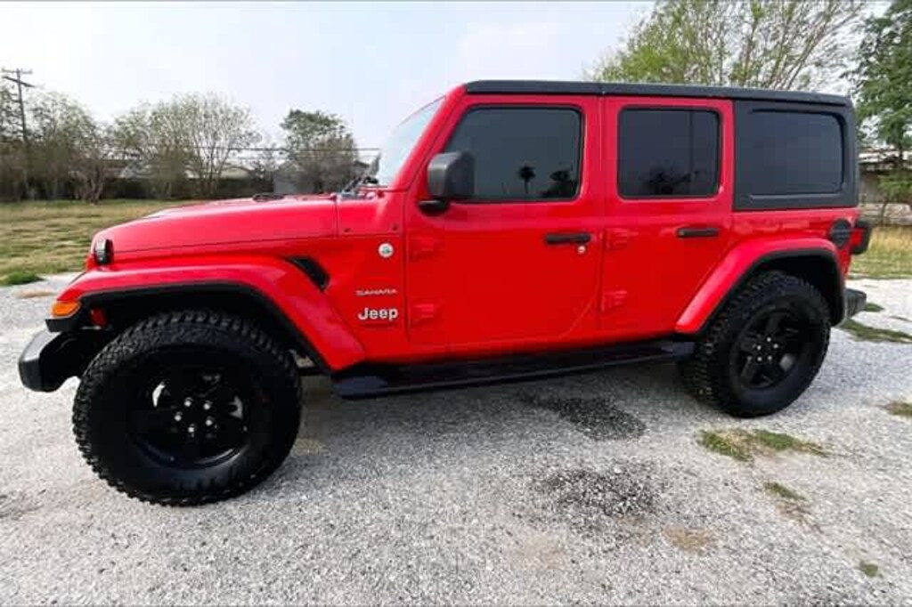 FRESH OIL CHANGE, 1-Year SiriusXM Radio Service, 3.45 Rear Axle Ratio, 4-Wheel Disc Brakes, 8 Speakers, ABS brakes, Air Conditioning, Alloy wheels, AM/FM radio: SiriusXM, Apple CarPlay, Apple CarPlay/Android Auto, Automatic temperature control, Aux Battery, Black 3-Piece Hard Top, Brake assist, Cloth Low-Back Bucket Seats, Compass, Delay-off headlights, Driver door bin, Driver vanity mirror, Dual front impact airbags, Dual front side impact airbags, Electronic Stability Control, Freedom Panel Storage Bag, Front anti-roll bar, Front Bucket Seats, Front Center Armrest w/Storage, Front dual zone A/C, Front fog lights, Front License Plate Bracket, Front reading lights, Fully automatic headlights, Garage door transmitter, Google Android Auto, GPS Antenna Input, Heated door mirrors, Heavy Duty Suspension w/Gas Shocks, Illuminated entry, Integrated roll-over protection, Integrated Voice Command w/Bluetooth, Leather steering wheel, Low tire pressure warning, Manufacturers Statement of Origin, No Soft Top, Non-Lock Fuel Cap w/o Discriminator, Occupant sensing airbag, Outside temperature display, Panic alarm, ParkView Rear Back-Up Camera, Passenger door bin, Passenger vanity mirror, Power door mirrors, Power steering, Power windows, Quick Order Package 28G, Radio data system, Radio: Uconnect 4 w/7 Display, Rear anti-roll bar, Rear reading lights, Rear Window Defroster, Rear Window Wiper/Washer, Remote keyless entry, Security system, Speed control, Split folding rear seat, Steering wheel mounted audio controls, Stop-Start Dual Battery System, Tachometer, Telescoping steering wheel, Tilt steering wheel, Traction control, Trip computer, Variably intermittent wipers, Voltmeter, Wheels: 18 x 7.5 Polished w/Gray Spokes. Recent Arrival! Firecracker Red Clearcoat 2020 Jeep Wrangler Unlimited Sahara 4WD 8-Speed Automatic 2.0L I4 DOHC