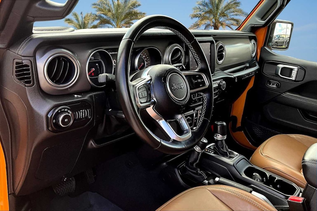 FRESH OIL CHANGE, 1-Year SiriusXM Guardian Trial, 4-Wheel Disc Brakes, 4.10 Rear Axle Ratio, 4G LTE Wi-Fi Hot Spot, 5-Year SiriusXM Traffic Service, 5-Year SiriusXM Travel Link Service, 8 Speakers, 8.4 Radio & Premium Audio Group, 8.4 Touchscreen Display, ABS brakes, Air Conditioning, Alloy wheels, Alpine Premium Audio System, AM/FM radio: SiriusXM, Apple CarPlay/Android Auto, Auto-Dimming Rear-View Mirror, Automatic temperature control, Aux Battery, Blind Spot & Cross Path Detection, Body Color 3-Piece Hard Top, Body Color Fender Flares, Brake assist, Compass, Daytime Running Lamps LED Accents, Delay-off headlights, Driver door bin, Driver vanity mirror, Dual front impact airbags, Dual front side impact airbags, Electronic Stability Control, Emergency/Assistance Call, For Details, Visit DriveUconnect.com, Front anti-roll bar, Front Bucket Seats, Front Center Armrest w/Storage, Front dual zone A/C, Front fog lights, Front LED Fog Lamps, Front License Plate Bracket, Front reading lights, Fully automatic headlights, Garage door transmitter, GPS Navigation, HD Radio, Heated door mirrors, Illuminated entry, Integrated Off-Road Camera, Integrated roll-over protection, Leather steering wheel, LED Lighting Group, LED Premium Reflector Headlamps, LED Taillamps, Low tire pressure warning, MOPAR All-Weather Floor Mats (DISC), MOPAR Hardtop Headliner, Non-Lock Fuel Cap w/o Discriminator, Occupant sensing airbag, Off-Road Info Pages, Outside temperature display, Panic alarm, ParkSense Rear Park Assist System, ParkView Rear Back-Up Camera, Passenger door bin, Passenger vanity mirror, Performance Suspension, Power door mirrors, Power steering, Power windows, Premium Cloth Low-Back Bucket Seats, Quick Order Package 25R, Radio data system, Radio: Uconnect 4 w/7 Display, Radio: Uconnect 4C Nav w/8.4 Display, Rear anti-roll bar, Rear reading lights, Remote keyless entry, Remote Proximity Keyless Entry, Remote Start System, Safety Group, Security system, SiriusXM Traffic Plus, SiriusXM Travel Link, Speed control, Split folding rear seat, Steering wheel mounted audio controls, Stop-Start Dual Battery System, Tachometer, Telescoping steering wheel, Tilt steering wheel, Traction control, Trip computer, Variably intermittent wipers, Voltmeter, Wheels: 17 x 7.5 Machined w/Black Pockets. Recent Arrival! Odometer is 22521 miles below market average! Nacho Clearcoat 2021 Jeep Wrangler Unlimited Rubicon 4WD 8-Speed Automatic 3.6L V6 24V VVT