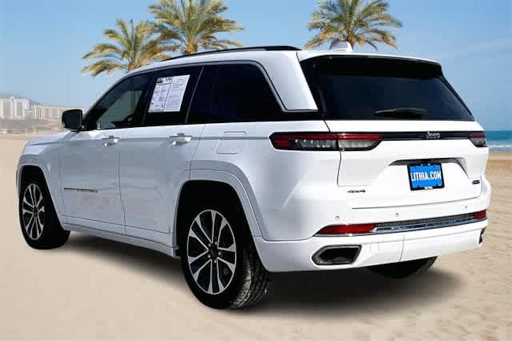 FRESH OIL CHANGE, 4WD, 10 Speakers, 3.45 Rear Axle Ratio, 4-Wheel Disc Brakes, 4G LTE Wi-Fi Hotspot, ABS brakes, Active Noise Control System, Adaptive suspension, Air Conditioning, Alloy wheels, AM/FM radio: SiriusXM with 360L, Anti-whiplash front head restraints, Apple CarPlay, Audio memory, Auto High-beam Headlights, Auto-dimming door mirrors, Auto-dimming Rear-View mirror, Auto-leveling suspension, Automatic temperature control, Brake assist, Bumpers: body-color, Compass, Connected Travel & Traffic Services, Connectivity - US/Canada, Delay-off headlights, Disassociated Touchscreen Display, Driver door bin, Driver vanity mirror, Dual front impact airbags, Dual front side impact airbags, Electronic Stability Control, Emergency communication system, For Details, Visit DriveUconnect.com, For More Info, Call 800-643-2112, Four wheel independent suspension, Front anti-roll bar, Front Bucket Seats, Front Center Armrest w/Storage, Front dual zone A/C, Front fog lights, Front reading lights, Fully automatic headlights, Garage door transmitter, Global Telematics Box Module (TBM), Google Android Auto, GPS Antenna Input, GPS Navigation, HD Radio, Heated door mirrors, Heated front seats, Heated rear seats, Heated steering wheel, Illuminated entry, Integrated Center Stack Radio, Integrated Voice Command w/Bluetooth, Knee airbag, Leather steering wheel, Low tire pressure warning, Memory seat, Nappa Leather Seats, Navigation System, Normal Duty Suspension, Occupant sensing airbag, Outside temperature display, Overhead airbag, Overhead console, Panic alarm, Passenger door bin, Passenger vanity mirror, Power door mirrors, Power driver seat, Power Liftgate, Power moonroof, Power passenger seat, Power steering, Power windows, Quick Order Package 22N, Radio data system, Radio: Uconnect 5 Nav w/8.4 Display, Rain sensing wipers, Rear anti-roll bar, Rear reading lights, Rear seat center armrest, Rear window defroster, Rear window wiper, Remote keyless entry, Roof rack: rails only, Security system, SiriusXM Radio Service, SiriusXM Satellite Radio, SiriusXM w/360L, Speed control, Speed-Sensitive Wipers, Split folding rear seat, Spoiler, Steering wheel memory, Steering wheel mounted audio controls, Tachometer, Telescoping steering wheel, Tilt steering wheel, Traction control, Trip computer, Turn signal indicator mirrors, USB Host Flip, Variably intermittent wipers, Ventilated front seats, Voltmeter, Wheels: 20 x 8.5 Machined Face Aluminum, 4WD. 19/26 City/Highway MPG Bright White Clearcoat 2022 Jeep Grand Cherokee Overland 4WD 8-Speed Automatic 3.6L V6 24V VVT