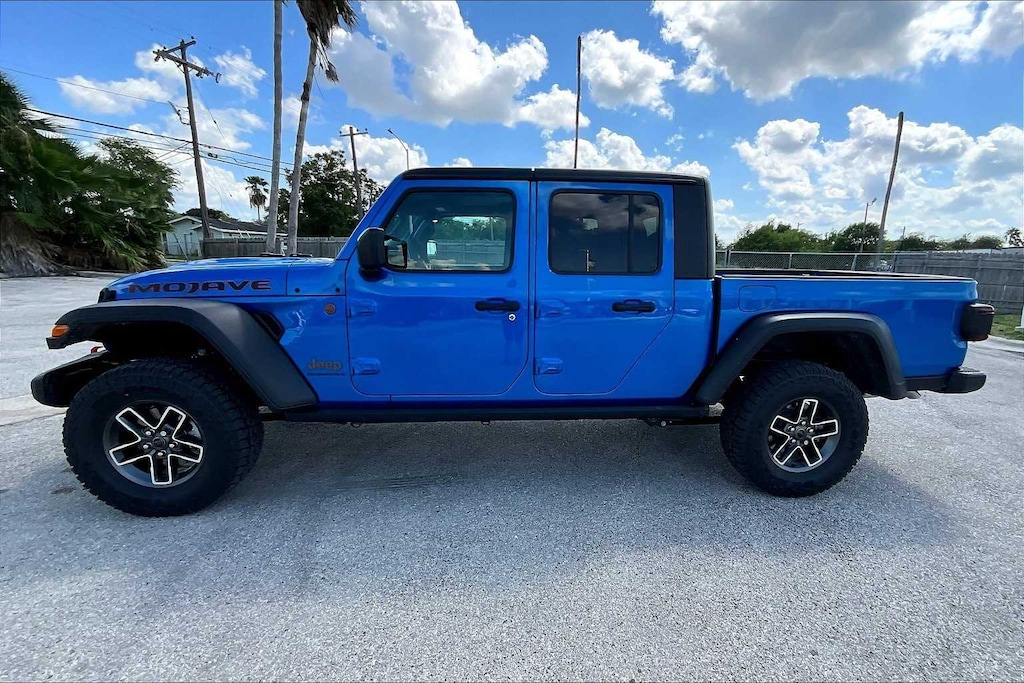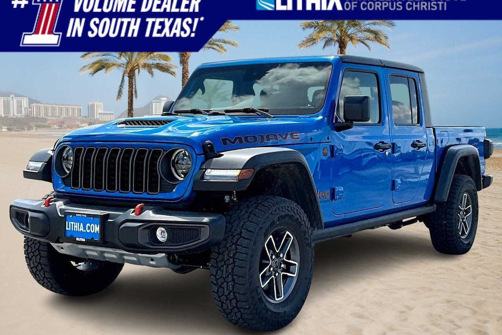 Hydro Blue Pearlcoat 2025 Jeep Gladiator Mojave 4WD 8-Speed Automatic 3.6L V6 24V VVT FRESH OIL CHANGE, 12.3 Touchscreen Display, 4-Wheel Disc Brakes, 4.10 Rear Axle Ratio, 4G LTE Wi-Fi Hot Spot, 8 Speakers, 97 MPH Vehicle Max Speed Calibration, ABS brakes, Air Conditioning, Alexa Built-In, Alloy wheels, AM/FM radio: SiriusXM, Apple CarPlay, Apple CarPlay/Android Auto, Automatic temperature control, Black 3-Piece Hard Top, Brake assist, Compass, Connectivity - US/Canada, Delay-off headlights, Driver door bin, Driver vanity mirror, Dual front impact airbags, Dual front side impact airbags, Electronic Stability Control, Emergency communication system: Jeep Connect, Freedom Panel Storage Bag, Front anti-roll bar, Front Bucket Seats, Front Center Armrest w/Storage, Front dual zone A/C, Front fog lights, Front License Plate Bracket, Front reading lights, Fully automatic headlights, Google Android Auto, Heated door mirrors, Heavy Duty Suspension w/Gas Shocks, Illuminated entry, Integrated roll-over protection, Low tire pressure warning, Occupant sensing airbag, Outside temperature display, Overhead airbag, Panic alarm, Passenger door bin, Passenger vanity mirror, Power door mirrors, Power steering, Power windows, Premium Cloth Seats w/Sport Bolsters, Quick Order Package 24D Mojave, Radio data system, Radio: Uconnect 5 w/12.3 Display, Rear anti-roll bar, Rear reading lights, Rear Sliding Window, Rear Window Defroster, Remote keyless entry, Security system, Speed control, Split folding rear seat, Steering wheel mounted audio controls, Tachometer, Telescoping steering wheel, Tilt steering wheel, Traction control, Trip computer, USB Host Flip, Variably intermittent wipers, Voltmeter, Wheels: 17 x 7.5 Dark Gray Painted.