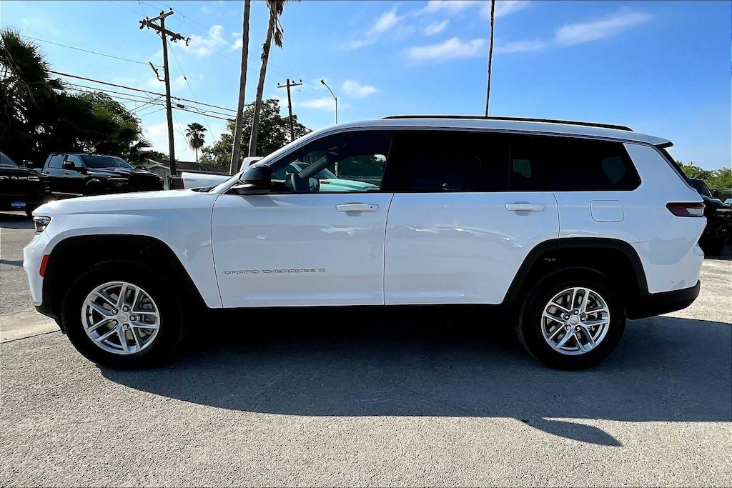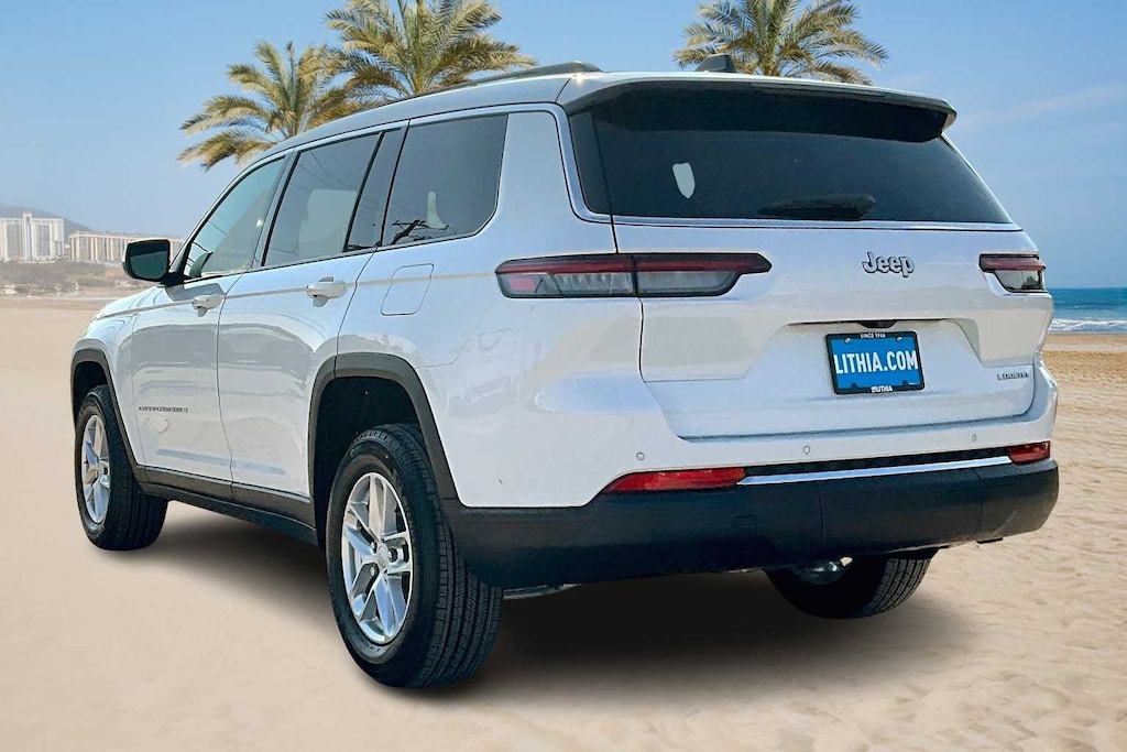 Bright White Clearcoat 2025 Jeep Grand Cherokee L Laredo RWD 8-Speed Automatic 3.6L V6 24V VVT FRESH OIL CHANGE, 3.45 Rear Axle Ratio, 3rd row seats: split-bench, 4-Wheel Disc Brakes, 6 Speakers, ABS brakes, Air Conditioning, Alloy wheels, AM/FM radio: SiriusXM, Anti-whiplash front head restraints, Automatic temperature control, Brake assist, Bumpers: body-color, Cloth Seats, Compass, Delay-off headlights, Driver door bin, Driver vanity mirror, Dual front impact airbags, Dual front side impact airbags, Electronic Stability Control, Emergency communication system, Four wheel independent suspension, Front anti-roll bar, Front Bucket Seats, Front Center Armrest w/Storage, Front dual zone A/C, Front License Plate Bracket, Front reading lights, Fully automatic headlights, Heated door mirrors, Illuminated entry, Knee airbag, Laredo X, Low tire pressure warning, Manual Fold Seatbacks, Model Year Tracking, Normal Duty Suspension, Occupant sensing airbag, Outside temperature display, Overhead airbag, Overhead console, Panic alarm, ParkView Rear Back-Up Camera, Passenger door bin, Passenger vanity mirror, Power door mirrors, Power driver seat, Power steering, Power Sunroof, Power windows, Quick Order Package 23D Laredo X, Radio data system, Radio: Uconnect 5 w/8.4 Display, Rear air conditioning, Rear anti-roll bar, Rear reading lights, Rear window defroster, Rear window wiper, Reclining 3rd row seat, Remote keyless entry, Security system, Speed control, Speed-Sensitive Wipers, Split folding rear seat, Spoiler, Steering wheel mounted audio controls, Tachometer, Telescoping steering wheel, Tilt steering wheel, Traction control, Trip computer, Variably intermittent wipers, Voltmeter, Wheels: 18 x 8.0 Fully Painted Aluminum.