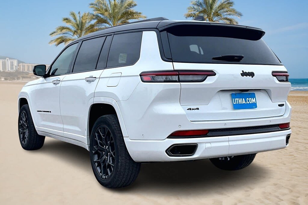 Bright White Clearcoat 2025 Jeep Grand Cherokee L Summit 4WD 8-Speed Automatic 3.6L V6 24V VVT FRESH OIL CHANGE, 10 Speakers, 3.45 Rear Axle Ratio, 3rd row seats: split-bench, 4-Wheel Disc Brakes, ABS brakes, Active Noise Control System, Adaptive suspension, Air Conditioning, Alloy wheels, AM/FM radio: SiriusXM with 360L, Anti-whiplash front head restraints, Audio memory, Auto High-beam Headlights, Auto-dimming door mirrors, Auto-dimming Rear-View mirror, Auto-leveling suspension, Automatic temperature control, Brake assist, Bumpers: body-color, Compass, Delay-off headlights, Driver door bin, Driver vanity mirror, Dual front impact airbags, Dual front side impact airbags, Electronic Stability Control, Emergency communication system, Four wheel independent suspension, Front anti-roll bar, Front Bucket Seats, Front Center Armrest w/Storage, Front dual zone A/C, Front fog lights, Front License Plate Bracket, Front reading lights, Fully automatic headlights, Garage door transmitter, Genuine wood dashboard insert, Genuine wood door panel insert, Gloss Black Exterior Accents, Heated door mirrors, Heated front seats, Heated rear seats, Heated steering wheel, High Altitude Package, Illuminated entry, Knee airbag, Leather steering wheel, Low tire pressure warning, Memory seat, Model Year Tracking, Nappa Leather Seats, Navigation System, Neutral Gray Exterior Accents, Normal Duty Suspension, Occupant sensing airbag, Outside temperature display, Overhead airbag, Overhead console, Painted Door Cladding, Panic alarm, Passenger door bin, Passenger vanity mirror, Power door mirrors, Power driver seat, Power Fold Seatbacks, Power Liftgate, Power moonroof, Power passenger seat, Power steering, Power windows, Quick Order Package 23S, Radio data system, Radio: Uconnect 5 Nav with 10.1 Display, Rain sensing wipers, Rear air conditioning, Rear anti-roll bar, Rear dual zone A/C, Rear reading lights, Rear seat center armrest, Rear window defroster, Rear window wiper, Reclining 3rd row seat, Remote keyless entry, Security system, Speed control, Speed-Sensitive Wipers, Split folding rear seat, Spoiler, Steering wheel memory, Steering wheel mounted audio controls, Tachometer, Telescoping steering wheel, Tilt steering wheel, Traction control, Trip computer, Turn signal indicator mirrors, Two Tone Paint Group, Variably intermittent wipers, Ventilated front seats, Voltmeter, Wheels: 20 x 8.5 Fully Painted Aluminum Silver, Wheels: 21 x 9 Black Painted Aluminum. Price includes: $2500 - 2025 National Retail Bonus Cash . Exp. 01/05/2026