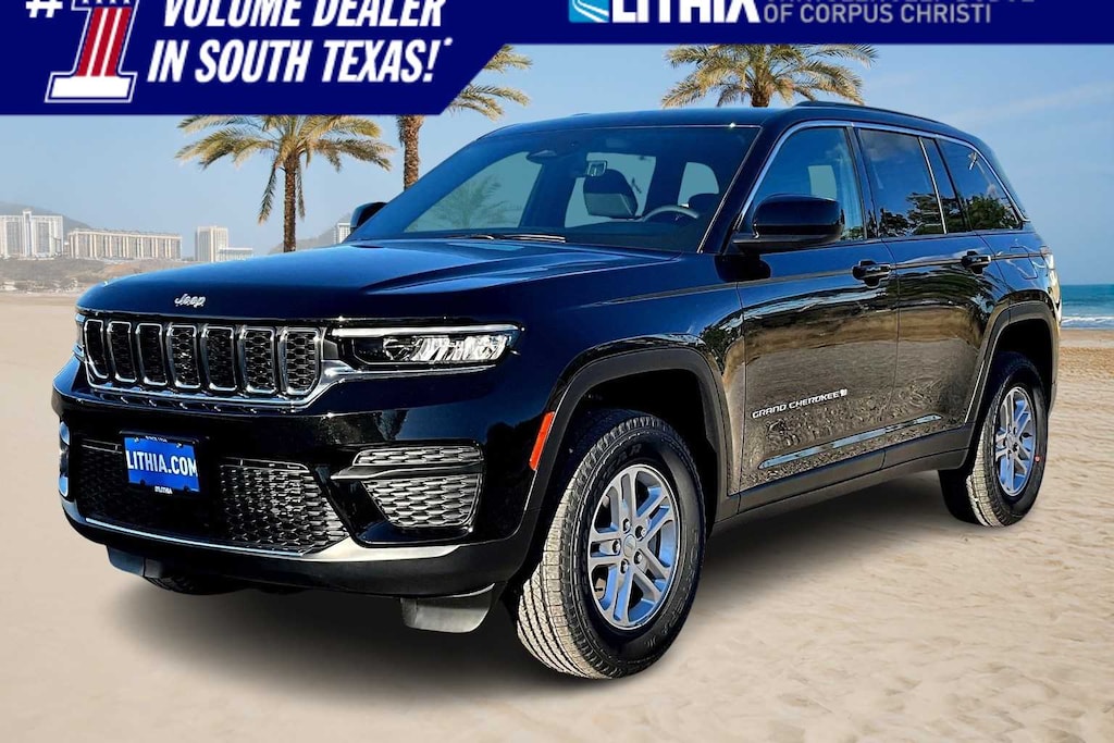 Diamond Black Crystal Pearlcoat 2025 Jeep Grand Cherokee Laredo RWD 8-Speed Automatic 3.6L V6 24V VVT FRESH OIL CHANGE, 4-Wheel Disc Brakes, 6 Speakers, ABS brakes, Air Conditioning, Alloy wheels, AM/FM radio: SiriusXM, Anti-whiplash front head restraints, Automatic temperature control, Brake assist, Bumpers: body-color, Cloth Seats, Compass, Delay-off headlights, Driver door bin, Driver vanity mirror, Dual front impact airbags, Dual front side impact airbags, Electronic Stability Control, Emergency communication system, Four wheel independent suspension, Front anti-roll bar, Front Bucket Seats, Front Center Armrest w/Storage, Front dual zone A/C, Front License Plate Bracket, Front reading lights, Fully automatic headlights, Heated door mirrors, Illuminated entry, Knee airbag, Low tire pressure warning, Model Year Tracking, Normal Duty Suspension, Occupant sensing airbag, Outside temperature display, Overhead airbag, Overhead console, Panic alarm, ParkView Rear Back-Up Camera, Passenger door bin, Passenger vanity mirror, Power door mirrors, Power driver seat, Power steering, Power windows, Radio data system, Radio: Uconnect 5 w/8.4 Display, Rear anti-roll bar, Rear reading lights, Rear window defroster, Rear window wiper, Remote keyless entry, Security system, Speed control, Speed-Sensitive Wipers, Split folding rear seat, Spoiler, Steering wheel mounted audio controls, Tachometer, Telescoping steering wheel, Tilt steering wheel, Traction control, Trip computer, Variably intermittent wipers, Voltmeter, Wheels: 17 x 6.5 Fully Painted Aluminum.