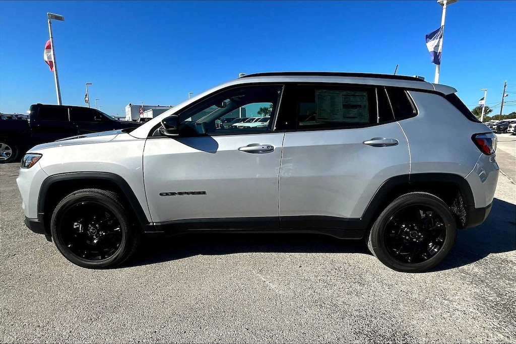 Silver Zynith Metallic Clearcoat 2026 Jeep Compass Latitude 4WD 8-Speed Automatic 2.0L I4 DOHC FRESH OIL CHANGE, 4WD, 10.1 Touchscreen Display, 3.73 Final Drive Ratio, 4-Wheel Disc Brakes, 4G LTE Wi-Fi Hot Spot, 6 Speakers, ABS brakes, Air Conditioning, Alloy wheels, Altitude Special Edition, AM/FM radio: SiriusXM, Auto High-beam Headlights, Auto-dimming Rear-View mirror, Automatic temperature control, Black Day Light Opening Moldings, Bluetooth Handsfree Phone & Audio, Brake assist, Bumpers: body-color, Compass, Delay-off headlights, Driver door bin, Driver vanity mirror, Dual front impact airbags, Dual front side impact airbags, Electronic Stability Control, Emergency communication system, Four wheel independent suspension, Front anti-roll bar, Front Bucket Seats, Front Center Armrest w/Storage, Front dual zone A/C, Front fog lights, Front License Plate Bracket, Front reading lights, Fully automatic headlights, Global Telematics Box Module (TBM), Gloss Black Surround/Neutral Gray Rings, Heated door mirrors, Heated front seats, Heated steering wheel, Illuminated entry, Knee airbag, Leather Shift Knob, Leather steering wheel, Low tire pressure warning, Manufacturers Statement of Origin (DISC), Neutral Gray Exterior Badging, Occupant sensing airbag, Outside temperature display, Overhead airbag, Overhead console, Panic alarm, ParkView Rear Back-Up Camera, Passenger door bin, Passenger vanity mirror, Piano Black Interior Accents, Power door mirrors, Power driver seat, Power steering, Power windows, Premium Cloth/Vinyl Bucket Seats, Quick Order Package 29N Altitude, Radio: Uconnect 5 w/8.4 Display, Rain sensing wipers, Rear anti-roll bar, Rear seat center armrest, Rear window defroster, Rear window wiper, Remote keyless entry, Security system, SiriusXM Satellite Radio, Sliding Sun Visors w/Illuminated Mirrors, Speed control, Split folding rear seat, Spoiler, Steering wheel mounted audio controls, Tachometer, Telescoping steering wheel, Tilt steering wheel, Traction control, Trip computer, Variably intermittent wipers, Wheels: 18 x 7 Gloss Black Painted Aluminum, 4WD.