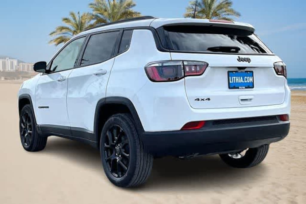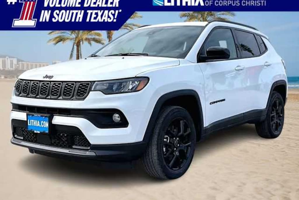 Bright White Clearcoat 2026 Jeep Compass Latitude 4WD 8-Speed Automatic 2.0L I4 DOHC FRESH OIL CHANGE, 4WD, 10.1 Touchscreen Display, 17 x 7 Aluminum Wheels, 3.73 Final Drive Ratio, 4-Wheel Disc Brakes, 4G LTE Wi-Fi Hot Spot, 6 Speakers, ABS brakes, Air Conditioning, Altitude Special Edition, AM/FM radio: SiriusXM, Auto High-beam Headlights, Automatic temperature control, Black Day Light Opening Moldings, Bluetooth Handsfree Phone and Audio, Brake assist, Bumpers: body-color, Compass, Delay-off headlights, Driver door bin, Driver vanity mirror, Dual front impact airbags, Dual front side impact airbags, Electronic Stability Control, Emergency communication system: SiriusXM Guardian, Four wheel independent suspension, Front anti-roll bar, Front Bucket Seats, Front Center Armrest w/Storage, Front fog lights, Front License Plate Bracket, Front reading lights, Fully automatic headlights, Global Telematics Box Module, Gloss Black Surround/Neutral Gray Rings, Heated door mirrors, Heated front seats, Heated steering wheel, Illuminated entry, Knee airbag, Leather Shift Knob, Leather steering wheel, Low tire pressure warning, Manufacture Statement of Origin, Neutral Gray Exterior Badging, Occupant sensing airbag, Outside temperature display, Overhead airbag, Overhead console, Panic alarm, ParkView Rear Back-Up Camera, Passenger door bin, Passenger vanity mirror, Piano Black Interior Accents, Power door mirrors, Power steering, Power windows, Premium audio system: UConnect 5, Premium Cloth/Vinyl Bucket Seats, Quick Order Package 29N Altitude, Radio: Uconnect 5 with 8.4 Display, Rear anti-roll bar, Rear seat center armrest, Rear window defroster, Rear window wiper, Remote keyless entry, Security system, SiriusXM Satellite Radio, Sliding Sun Visors with Illuminated Mirrors, Speed control, Split folding rear seat, Spoiler, Steering wheel mounted audio controls, Tachometer, Telescoping steering wheel, Tilt steering wheel, Traction control, Trip computer, Variably intermittent wipers, Wheels: 18 x 7 Gloss Black Painted Aluminum, 4WD.
