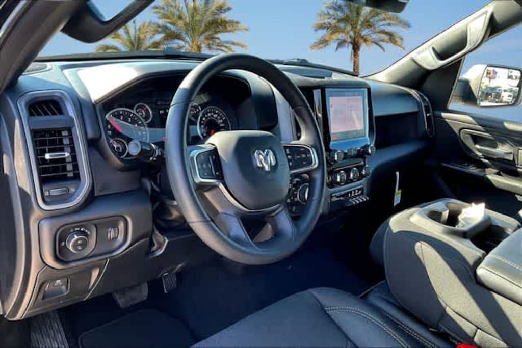 Diamond Black Crystal Pearlcoat 2025 Ram 1500 Tradesman 4WD 8-Speed Automatic 3.6L V6 24V VVT FRESH OIL CHANGE, 3.21 Rear Axle Ratio, 4 Way Front Headrests, 4-Wheel Disc Brakes, 40/20/40 Split Bench Seat, 6 Speakers, ABS brakes, Air Conditioning, AM/FM radio, Apple CarPlay/Android Auto, Auto High-beam Headlights, Black Exterior Mirrors, Brake assist, Bridgestone Brand Tires, Compass, Delay-off headlights, Driver door bin, Dual front impact airbags, Dual front side impact airbags, Electronic Stability Control, Exterior Mirrors w/Heating Element, Front anti-roll bar, Front Center Armrest, Front License Plate Bracket, Front reading lights, Front wheel independent suspension, Fully automatic headlights, Heated door mirrors, Heavy Duty Vinyl 40/20/40 Split Bench Seat, Illuminated entry, Low tire pressure warning, Manual Adjust 4-Way Driver Seat, Manual Adjust 4-Way Front Passenger Seat, Manual Folding Exterior Mirrors, Manufacturers Statement of Origin, Occupant sensing airbag, Outside temperature display, Overhead airbag, Overhead console, Panic alarm, ParkView Rear Back-Up Camera, Passenger door bin, Passenger vanity mirror, Power door mirrors, Power steering, Power windows, Radio data system, Radio: Uconnect 5 W w/8.4 Display, RAM Grille Badge - Black, Rear anti-roll bar, Rear step bumper, Remote keyless entry, Speed control, Tachometer, Telescoping steering wheel, Tilt steering wheel, Traction control, Variably intermittent wipers, Voltmeter, Wheels: 18 x 7.5 Steel Painted, Wheels: 20 x 9.0 Aluminum Polished Painted.