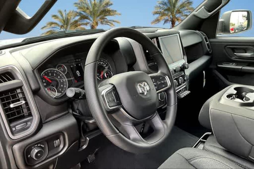 Granite Crystal Metallic Clearcoat 2025 Ram 1500 Tradesman 4WD 8-Speed Automatic 3.6L V6 24V VVT FRESH OIL CHANGE, 2nd Row In Floor Storage Bins, 3 Rear Seat Head Restraints, 3.21 Rear Axle Ratio, 4 Way Front Headrests, 4-Wheel Disc Brakes, 40/20/40 Split Bench Seat, 6 Speakers, ABS brakes, Air Conditioning, AM/FM radio, Apple CarPlay/Android Auto, Auto High-beam Headlights, Black Exterior Mirrors, Brake assist, Cloth Bench Seat, Compass, Delay-off headlights, Driver door bin, Dual front impact airbags, Dual front side impact airbags, Electronic Stability Control, Exterior Mirrors w/Heating Element, Front & Rear Floor Mats, Front anti-roll bar, Front Center Armrest, Front Center Seat Cushion Storage, Front License Plate Bracket, Front reading lights, Front Seat Back Map Pockets, Front wheel independent suspension, Fully automatic headlights, Heated door mirrors, Heavy Duty Vinyl 40/20/40 Split Bench Seat, Illuminated entry, Low tire pressure warning, Manual Adjust 4-Way Driver Seat, Manual Adjust 4-Way Front Passenger Seat, Manual Folding Exterior Mirrors, Manufacturers Statement of Origin, Occupant sensing airbag, Outside temperature display, Overhead airbag, Overhead console, Panic alarm, ParkView Rear Back-Up Camera, Passenger door bin, Passenger vanity mirror, Power door mirrors, Power steering, Power windows, Quick Order Package 23A Tradesman, Radio data system, Radio: Uconnect 5 W w/8.4 Display, RAM Grille Badge - Black, Rear 60/40 Folding Seat, Rear anti-roll bar, Rear Power Sliding Window, Rear step bumper, Remote keyless entry, Seat Parts Module II, SiriusXM Satellite Radio, Speed control, Tachometer, Telescoping steering wheel, Tilt steering wheel, Traction control, Tradesman Level 1 Equipment Group, Variably intermittent wipers, Voltmeter, Wheels: 18 x 7.5 Steel Painted.