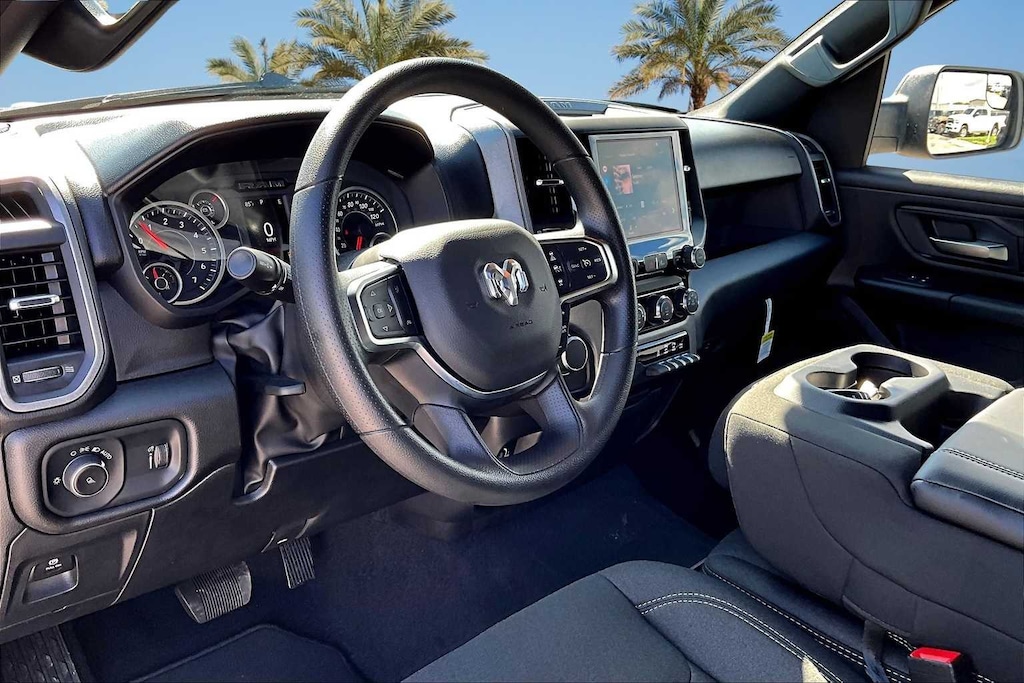Pj7 2025 Ram 1500 Tradesman RWD 8-Speed Automatic 3.6L V6 24V VVT FRESH OIL CHANGE, 2nd Row In Floor Storage Bins, 3 Rear Seat Head Restraints, 3.21 Rear Axle Ratio, 4 Way Front Headrests, 4-Wheel Disc Brakes, 40/20/40 Split Bench Seat, 6 Speakers, ABS brakes, Air Conditioning, AM/FM radio, Apple CarPlay/Android Auto, Auto High-beam Headlights, Black Exterior Mirrors, Brake assist, Cloth Bench Seat, Compass, Delay-off headlights, Driver door bin, Dual front impact airbags, Dual front side impact airbags, Electronic Stability Control, Exterior Mirrors w/Heating Element, Front & Rear Floor Mats, Front anti-roll bar, Front Center Armrest, Front Center Seat Cushion Storage, Front License Plate Bracket, Front reading lights, Front Seat Back Map Pockets, Front wheel independent suspension, Fully automatic headlights, Heated door mirrors, Heavy Duty Vinyl 40/20/40 Split Bench Seat, Illuminated entry, Low tire pressure warning, Manual Adjust 4-Way Driver Seat, Manual Adjust 4-Way Front Passenger Seat, Manual Folding Exterior Mirrors, Manufacturers Statement of Origin, Occupant sensing airbag, Outside temperature display, Overhead airbag, Overhead console, Panic alarm, ParkView Rear Back-Up Camera, Passenger door bin, Passenger vanity mirror, Power door mirrors, Power steering, Power windows, Quick Order Package 23A Tradesman, Radio data system, Radio: Uconnect 5 W w/8.4 Display, Rear 60/40 Folding Seat, Rear anti-roll bar, Rear Power Sliding Window, Rear step bumper, Remote keyless entry, Seat Parts Module II, SiriusXM Satellite Radio, Speed control, Tachometer, Telescoping steering wheel, Tilt steering wheel, Traction control, Tradesman Level 1 Equipment Group, Variably intermittent wipers, Voltmeter, Wheels: 18 x 7.5 Steel Painted.