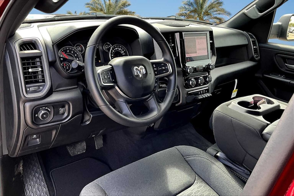 Delmonico Red Pearlcoat 2025 Ram 1500 Tradesman RWD 8-Speed Automatic 3.6L V6 24V VVT FRESH OIL CHANGE, 2nd Row In Floor Storage Bins, 3 Rear Seat Head Restraints, 3.21 Rear Axle Ratio, 4 Way Front Headrests, 4-Wheel Disc Brakes, 40/20/40 Split Bench Seat, 6 Speakers, ABS brakes, Air Conditioning, AM/FM radio, Apple CarPlay/Android Auto, Auto High-beam Headlights, Black Exterior Mirrors, Brake assist, Cloth Bench Seat, Compass, Delay-off headlights, Driver door bin, Dual front impact airbags, Dual front side impact airbags, Electronic Stability Control, Exterior Mirrors w/Heating Element, Front & Rear Floor Mats, Front anti-roll bar, Front Center Armrest, Front Center Seat Cushion Storage, Front License Plate Bracket, Front reading lights, Front Seat Back Map Pockets, Front wheel independent suspension, Fully automatic headlights, Heated door mirrors, Heavy Duty Vinyl 40/20/40 Split Bench Seat, Illuminated entry, Low tire pressure warning, Manual Adjust 4-Way Driver Seat, Manual Adjust 4-Way Front Passenger Seat, Manual Folding Exterior Mirrors, Manufacturers Statement of Origin, Occupant sensing airbag, Outside temperature display, Overhead airbag, Overhead console, Panic alarm, ParkView Rear Back-Up Camera, Passenger door bin, Passenger vanity mirror, Power door mirrors, Power steering, Power windows, Quick Order Package 23A Tradesman, Radio data system, Radio: Uconnect 5 W w/8.4 Display, Rear 60/40 Folding Seat, Rear anti-roll bar, Rear Power Sliding Window, Rear step bumper, Remote keyless entry, Seat Parts Module II, SiriusXM Satellite Radio, Speed control, Tachometer, Telescoping steering wheel, Tilt steering wheel, Traction control, Tradesman Level 1 Equipment Group, Variably intermittent wipers, Voltmeter, Wheels: 18 x 7.5 Steel Painted.