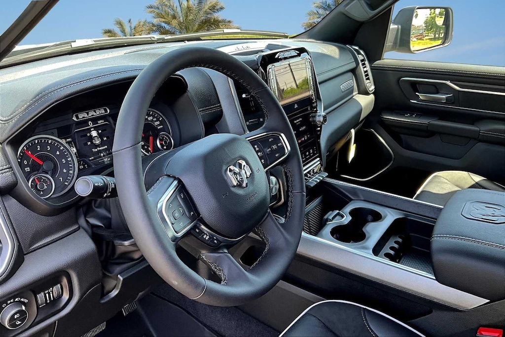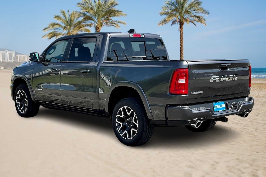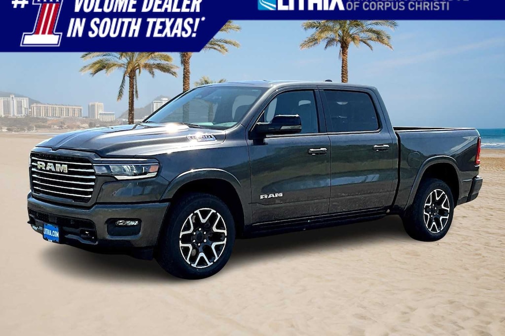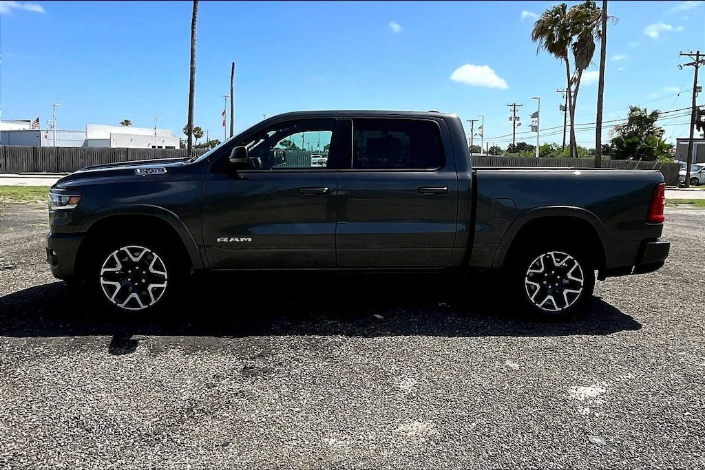 New Price! Granite Crystal Metallic Clearcoat 2025 Ram 1500 Laramie RWD 8-Speed Automatic 3.0L I6 FRESH OIL CHANGE, 10 Speakers, 3 Rear Seat Head Restraints, 3.21 Rear Axle Ratio, 4 Way Front Headrests, 4-Wheel Disc Brakes, 4G LTE Wi-Fi Hot Spot, ABS brakes, Accent Color Premium Power Mirrors, Air Conditioning, Alloy wheels, AM/FM radio: SiriusXM with 360L, Apple CarPlay, Apple CarPlay/Android Auto, Audio memory, Auto High-beam Headlights, Auto Power-Folding Mirrors, Auto-dimming door mirrors, Auto-Dimming Exterior Driver Mirror, Auto-dimming Rear-View mirror, Automatic temperature control, Black Painted Exterior Mirrors Caps, Body Color Front Bumper, Body Color Rear Bumper w/Step Pads, Brake assist, Bumpers: chrome, Chrome Exterior Mirrors, Compass, Connected Travel & Traffic Services, Connectivity - US/Canada, Convex Wide-Angle Exterior Mirror Insert, Delay-off headlights, Dome Dual LED Reading Lamp, Driver door bin, Driver Seat Memory, Driver vanity mirror, Dual front impact airbags, Dual front side impact airbags, Dual-Pane Panoramic Sunroof, Electronic Stability Control, Exterior Mirrors Courtesy Lamps, Exterior Mirrors w/Heating Element, Exterior Mirrors w/Memory, Exterior Mirrors w/Supplemental Signals, Exterior Parking Camera Rear, Front anti-roll bar, Front Center Armrest w/Storage, Front dual zone A/C, Front fog lights, Front License Plate Bracket, Front reading lights, Front Seat Back Map Pockets, Front wheel independent suspension, Fully automatic headlights, Garage door transmitter, Google Android Auto, GPS Antenna Input, GPS Navigation, Grille Surround 3 Body Color Tex 4 Chrome, HD Radio, Heated door mirrors, Heated Front Seats, Heated front seats, Heated rear seats, Heated Second Row Seats, Heated Steering Wheel, Heated steering wheel, Illuminated entry, Integrated Voice Command w/Bluetooth, Laramie Level 1 Equipment Group, Laramie Southwest Edition, Leather steering wheel, Leather Trim 40/20/40 Bench Seat, LED Dome/Reading Lamp, Low tire pressure warning, Manufacturers Statement of Origin, Memory seat, MOPAR Front & Rear Rubber Floor Mats, Navigation System, Occupant sensing airbag, Outside temperature display, Overhead airbag, Overhead console, Panic alarm, Passenger door bin, Passenger vanity mirror, Power 2-Way Driver Lumbar Adjust, Power 2-Way Passenger Lumbar Adjust, Power Adjust 8-Way Driver Seat, Power Adjust 8-Way Front Passenger Seat, Power Deployable Running Boards, Power door mirrors, Power driver seat, Power passenger seat, Power steering, Power windows, Quick Order Package 21H Laramie, Radio data system, Radio: Uconnect 5 Nav w/12.0 Display, Rain Sensitive Windshield Wipers, RAM Grille Badge - Chrome, Rear 60/40 Folding Split Recline Seat, Rear anti-roll bar, Rear reading lights, Rear seat center armrest, Rear step bumper, Remote keyless entry, Remote Tailgate Release, Security system, SiriusXM w/360L, Speed control, Split folding rear seat, Steering wheel mounted audio controls, Tachometer, Telescoping steering wheel, Tilt steering wheel, Tow Hooks, Traction control, Trailer Brake Control, Trip computer, Turn signal indicator mirrors, USB Host Flip, Variably intermittent wipers, Ventilated front seats, Voltmeter, Wheels: 20 x 9 Premium Paint/Polish.