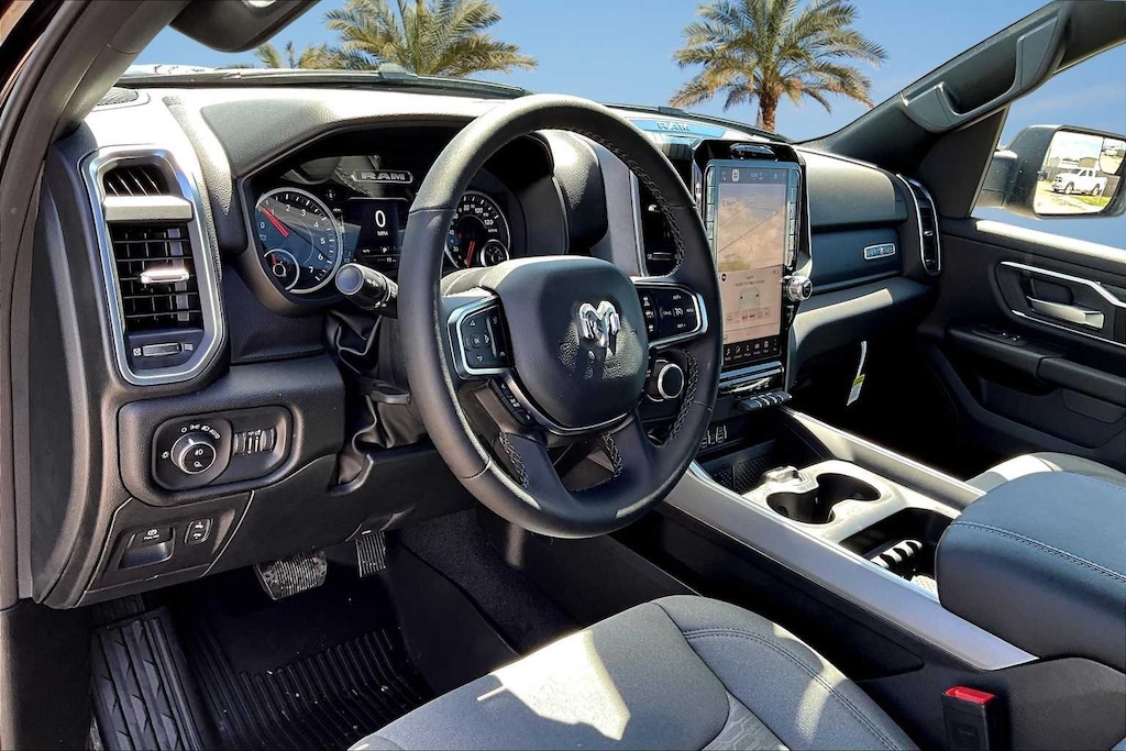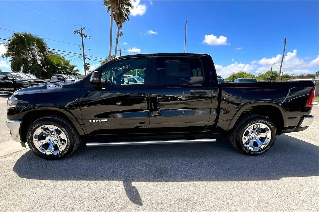 Diamond Black Crystal Pearlcoat 2026 Ram 1500 Big Horn/Lone Star RWD 8-Speed Automatic 3.0L I6 FRESH OIL CHANGE, 115V Auxiliary Power Outlet, 115V Auxiliary Rear Power Outlet, 12 Touchscreen Display, 2nd Row In Floor Storage Bins, 3 Rear Seat Head Restraints, 3.21 Rear Axle Ratio, 4 Way Front Headrests, 4-Wheel Disc Brakes, 400W Inverter, 48V Belt Starter Generator, 4G LTE Wi-Fi Hot Spot, 6 Speakers, 9 Amplified Speakers w/Subwoofer, ABS brakes, Air Conditioning, Air Conditioning ATC w/Dual Zone Control, Alloy wheels, AM/FM radio, Apple CarPlay, Apple CarPlay/Android Auto, Auto High-beam Headlights, Auto Power-Folding Mirrors, Auto-Dimming Exterior Driver Mirror, Auto-Dimming Rear-View Mirror, Big Horn Level 2 Equipment Group, Black Exterior Mirrors, Black Premium Power Mirrors, Body Color Fender Flares, Brake assist, Bucket Seats, Bumpers: chrome, Center Console Parts Module, Cloth Bucket Seats, Cluster 7.0 TFT Color Display, Compass, Configurable Drive Mode, Connected Travel & Traffic Services, Connectivity - US/Canada, Convex Wide-Angle Exterior Mirror Insert, Delay-off headlights, Deluxe Cloth Bucket Seats, Disassociated Touchscreen Display, Driver door bin, Dual front impact airbags, Dual front side impact airbags, Electronic Stability Control, Exterior Mirrors Courtesy Lamps, Exterior Mirrors w/Heating Element, Exterior Mirrors w/Supplemental Signals, Exterior Parking Camera Rear, Front anti-roll bar, Front Bucket Seats, Front Center Armrest w/Storage, Front fog lights, Front License Plate Bracket, Front reading lights, Front Seat Back Map Pockets, Front wheel independent suspension, Full Length Floor Console, Fully automatic headlights, Global Telematics Box Module (TBM), Glove Box Lamp, Google Android Auto, GPS Antenna Input, GPS Navigation, HD Radio, Heated door mirrors, Heated Front Seats, Heated Steering Wheel, Illuminated entry, Integrated Center Stack Radio, Integrated Voice Command w/Bluetooth, Leather Wrapped Steering Wheel, LED Dome Lamp w/On/Off Switch, LED Footwell Lighting, Lone Star Badge, Low tire pressure warning, Manual Adjust 4-Way Driver Seat, Manual Adjust 4-Way Front Passenger Seat, Manual Folding Exterior Mirrors, Manufacturers Statement of Origin, Media Hub w/2 Charge Only USBs, MOPAR Front & Rear Rubber Floor Mats, Occupant sensing airbag, Outside temperature display, Overhead airbag, Overhead console, Overhead LED Lamps, Panic alarm, Passenger door bin, Passenger vanity mirror, Power 2-Way Driver Lumbar Adjust, Power Adjust 8-Way Driver Seat, Power Adjustable Pedals, Power door mirrors, Power steering, Power windows, Premium Overhead Console, Quick Order Package 21R Lone Star (Regional), Radio data system, Radio: Uconnect 5 Nav w/12.0 Display, Radio: Uconnect 5 W w/8.4 Display, RAM Grille Badge - Chrome, Rear 60/40 Folding Seat, Rear anti-roll bar, Rear Center Armrest, Rear Power Sliding Window, Rear step bumper, Rear Window Defroster, Remote keyless entry, Remote Tailgate Release, Secondary Active Grille Shutters, Security Alarm, SiriusXM Radio Service, SiriusXM w/360L, Speed control, Steering Wheel Mounted Audio Controls, Sun Visors w/Illuminated Vanity Mirrors, Supplier Part Tracking (J-1), Tachometer, Telescoping steering wheel, Tilt steering wheel, Traction control, Trip computer, Universal Garage Door Opener, USB Host Flip, Variably intermittent wipers, Voltmeter, Wheels: 18 x 8 Cast-Aluminum Painted, Wheels: 20 x 9 Aluminum Chrome Clad (WRK), Wireless Charging Pad. Price includes: $3500 - 2026 National Retail Consumer Cash . Exp. 11/03/2025