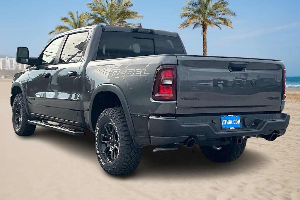 Granite Crystal Metallic Clearcoat 2026 Ram 1500 Rebel 4WD 8-Speed Automatic 3.0L I6 FRESH OIL CHANGE, 10 Speakers, 115V Auxiliary Rear Power Outlet, 12-Way/1-Way Trailer Connector, 14.4 Touchscreen Display, 2-Door Passive Entry, Front Door Locks, 3.92 Rear Axle Ratio, 4 Way Front Headrests, 4-Wheel Disc Brakes, 4G LTE Wi-Fi Hot Spot, ABS brakes, Accent Color Door Handles, Accent Color Premium Power Mirrors, Accent Color Tailgate Handle, Active Driving Assist System, Active Noise Control System, Advanced Safety Group II, Air Conditioning, Alloy wheels, AM/FM radio: SiriusXM with 360L, Apple CarPlay, Apple CarPlay/Android Auto, Auto High-beam Headlights, Auto Power-Folding Mirrors, Auto-Dimming Exterior Driver Mirror, Auto-Dimming Exterior Passenger Mirror, Auto-dimming Rear-View mirror, Automatic temperature control, Bed Utility Group, Black Exterior Mirrors, Black Painted Exterior Mirrors Caps, Black Power-Fold Trailer Tow Mirrors, Brake assist, Bucket Seats, Cloth/Vinyl Bucket Seats, Compass, Connected Travel and Traffic Services, Connectivity - US/Canada, Convex Wide-Angle Exterior Mirror Insert, Delay-off headlights, Disassociated Touchscreen Display, Driver door bin, Driver Seat Memory, Driver vanity mirror, Drowsy Driver Detection, Dual front impact airbags, Dual front side impact airbags, Dual Wireless Charging Pad, Electronic Stability Control, Evasive Steer Assist, Exterior 115V AC Outlet, Exterior Mirrors Approach Lamps, Exterior Mirrors Courtesy Lamps, Exterior Mirrors with Heating Element, Exterior Mirrors with Memory, Exterior Mirrors with Supplemental Signals, Forward and Reverse Utility Lights, Front anti-roll bar, Front Bucket Seats, Front Center Armrest w/Storage, Front dual zone A/C, Front fog lights, Front License Plate Bracket, Front Passenger Interactive Display, Front reading lights, Front Seat Back Map Pockets, Front wheel independent suspension, Full Length Upgraded Floor Console, Fully automatic headlights, Garage door transmitter, Global Telematics Box Module, Google Android Auto, GPS Antenna Input, GPS Navigation, Harman/Kardon 19 Speaker Premium Sound, HD Radio, Heads-Up Display, Heated door mirrors, Heated Front Seats, Heated front seats, Heated Second Row Seats, Heated Steering Wheel, Heated steering wheel, Illuminated entry, Integrated Center Stack Radio, Integrated Voice Command with Bluetooth, Intersection Collision Assist System, Leather steering wheel, LED CHMSL Lamp, Low tire pressure warning, Manual Folding Exterior Mirrors, Manufacturers Statement of Origin, Media Hub with 2 Charge Only USBs, Mirror Clearance/Running Lights, MOPAR 4 Adjustable Cargo Tie-Down Hooks, MOPAR Spray in Bedliner, Navigation System, Occupant sensing airbag, Off-Road Information Pages, Outside temperature display, Overhead airbag, Overhead console, Panic alarm, ParkView Rear Back-Up Camera, Passenger door bin, Passenger vanity mirror, Power 2-Way Driver Lumbar Adjust, Power 2-Way Passenger Lumbar Adjust, Power Adjust 8-Way Driver Seat, Power Adjust 8-Way Front Passenger Seat, Power Adjustable Pedals with Memory, Power door mirrors, Power driver seat, Power steering, Power Tailgate, Power Telescoping Mirrors, Power windows, Power-Adjustable Convex Aux Mirrors, Proximity Approach/Departure Lamps, Quick Order Package 21W Rebel, Radio data system, Radio: Uconnect 5 Nav with 14.4 Display, Radio: Uconnect 5 Navigation with 12.0 Display, Radio/Driver Seat/Mirrors/Pedals Memory, Rain Sensitive Windshield Wipers, Rear 60/40 Folding Seat, Rear anti-roll bar, Rear seat center armrest, Rear step bumper, Rear Window Defroster, Rebel Level 2 Equipment Group, Remote keyless entry, Security Alarm, SiriusXM Radio Service, SiriusXM with 360L, Smartphone as a Key Capable, Speed control, Split folding rear seat, Steering wheel mounted audio controls, Surround View Camera System, Tachometer, Technology Group, Telescoping steering wheel, Tilt steering wh Price includes: $3500 - 2026 National Retail Consumer Cash . Exp. 01/05/2026