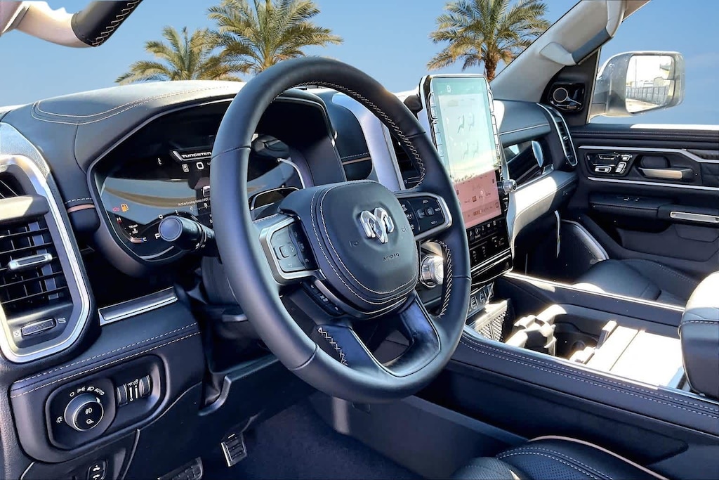 Ivory White Tri-Coat Pearlcoat 2026 Ram 1500 Tungsten 4WD 8-Speed Automatic 3.0L I6 FRESH OIL CHANGE, 12-Way/1-Way Trailer Connector, 3.92 Rear Axle Ratio, 4-Wheel Disc Brakes, ABS brakes, Adjustable pedals, Air Conditioning, Alloy wheels, AM/FM radio, Apple CarPlay/Android Auto, Audio memory, Auto High-beam Headlights, Auto Power-Folding Mirrors, Auto-dimming door mirrors, Auto-Dimming Exterior Driver Mirror, Auto-dimming Rear-View mirror, Auto-leveling suspension, Automatic temperature control, Bodyside moldings, Brake assist, Bumpers: body-color, Chrome Exterior Mirrors, Compass, Delay-off headlights, Driver door bin, Driver vanity mirror, Dual front impact airbags, Dual front side impact airbags, Electronic Stability Control, Exterior Mirrors Courtesy Lamps, Exterior Mirrors with Heating Element, Exterior Mirrors with Memory, Exterior Mirrors with Supplemental Signals, Exterior Parking Camera Rear, Front anti-roll bar, Front Bucket Seats, Front Center Armrest w/Storage, Front dual zone A/C, Front fog lights, Front License Plate Bracket, Front reading lights, Front wheel independent suspension, Fully automatic headlights, Garage door transmitter, Heads-Up Display, Heated door mirrors, Heated front seats, Heated rear seats, Heated steering wheel, Illuminated entry, Leather steering wheel, Low tire pressure warning, Manufacturers Statement of Origin, Memory seat, Navigation System, Occupant sensing airbag, Outside temperature display, Overhead airbag, Overhead console, Panic alarm, Passenger door bin, Passenger vanity mirror, Pedal memory, Power adjustable front head restraints, Power door mirrors, Power driver seat, Power moonroof, Power passenger seat, Power steering, Power windows, Premium Leather Bucket Seats, Quick Order Package 22V Tungsten, Radio data system, Radio: Uconnect 5 Nav with 14.4 Display, Rain sensing wipers, Rear anti-roll bar, Rear reading lights, Rear seat center armrest, Rear step bumper, Rear window defroster, Remote keyless entry, Security system, Speed control, Split folding rear seat, Steering wheel mounted audio controls, Tachometer, Telescoping steering wheel, Tilt steering wheel, Traction control, Trip computer, Turn signal indicator mirrors, Variably intermittent wipers, Ventilated front seats, Ventilated rear seats, Voltmeter, Wheels: 22 x 9 Polish/Painted with Inserts.