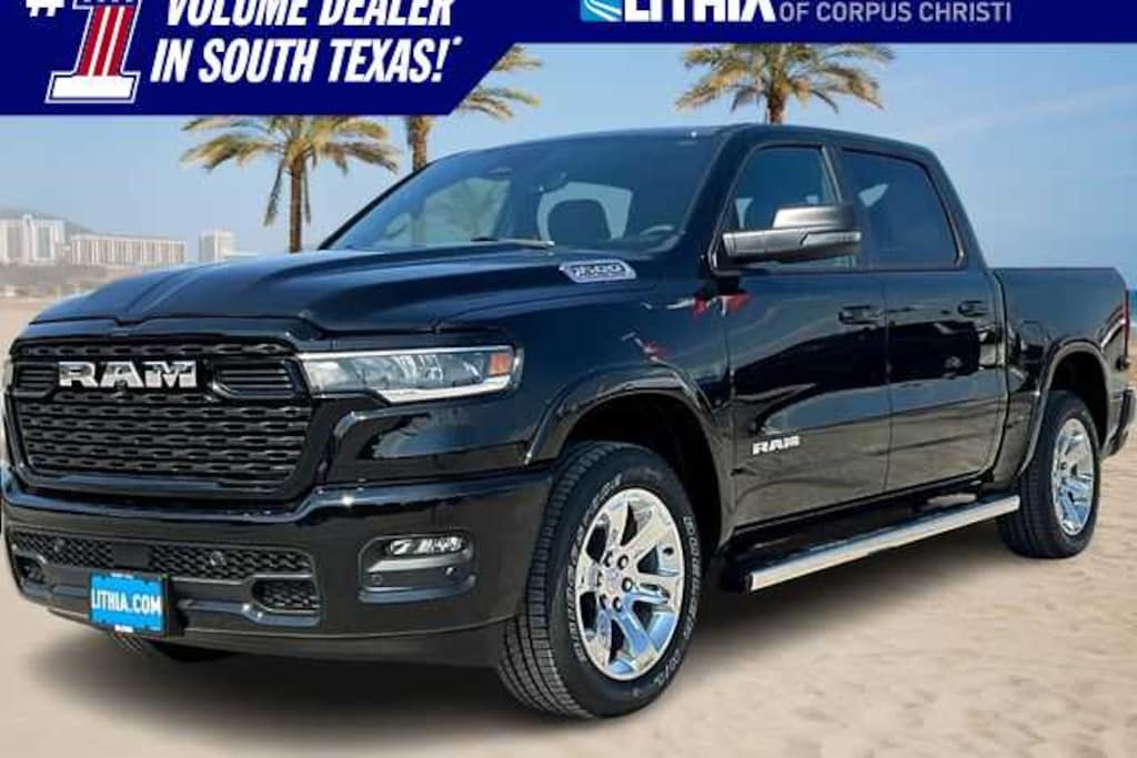 Diamond Black Crystal Pearlcoat 2026 Ram 1500 Big Horn/Lone Star 4WD 8-Speed Automatic 3.0L I6 FRESH OIL CHANGE, 115V Auxiliary Power Outlet, 115V Auxiliary Rear Power Outlet, 12 Touchscreen Display, 2nd Row in Floor Storage Bins, 3 Rear Seat Head Restraints, 4 Way Front Headrests, 4-Wheel Disc Brakes, 400W Inverter, 48V Belt Starter Generator, 4G LTE Wi-Fi Hot Spot, 6 Speakers, 9 Amplified Speakers with Subwoofer, ABS brakes, Air Conditioning, Air Conditioning ATC with Dual Zone Control, Alloy wheels, AM/FM radio, Apple CarPlay, Apple CarPlay/Android Auto, Auto High-beam Headlights, Auto Power-Folding Mirrors, Auto-Dimming Exterior Driver Mirror, Auto-Dimming Rear-View Mirror, Big Horn Level 2 Equipment Group, Black Exterior Mirrors, Black Interior Accents, Black Premium Power Mirrors, Body Color Door Handles, Body Color Fender Flares, Body Color Front Bumper, Body Color Rear Bumper with Step Pads, Body Color Tailgate Handle, Brake assist, Bucket Seats, Bumpers: chrome, Center Console Parts Module, Cloth Bucket Seats, Cluster 7.0 TFT Color Display, Compass, Configurable Drive Mode, Connected Travel and Traffic Services, Connectivity - US/Canada, Convex Wide-Angle Exterior Mirror Insert, Delay-off headlights, Deluxe Cloth Bucket Seats, Disassociated Touchscreen Display, Driver door bin, Dual front impact airbags, Dual front side impact airbags, Electronic Stability Control, Exterior Mirrors Courtesy Lamps, Exterior Mirrors with Heating Element, Exterior Mirrors with Supplemental Signals, Front anti-roll bar, Front Bucket Seats, Front Center Armrest w/Storage, Front fog lights, Front License Plate Bracket, Front reading lights, Front Seat Back Map Pockets, Front wheel independent suspension, Full Length Floor Console, Fully automatic headlights, Global Telematics Box Module, Glove Box Lamp, Google Android Auto, GPS Antenna Input, GPS Navigation, Grille Surround 1 Body Color Texture 1 Black, HD Radio, Heated door mirrors, Heated Front Seats, Heated Steering Wheel, Illuminated entry, Integrated Center Stack Radio, Integrated Voice Command with Bluetooth, Leather Wrapped Steering Wheel, LED Dome Lamp with on/Off Switch, LED Footwell Lighting, Lone Star Badge, Low tire pressure warning, Manual Adjust 4-Way Driver Seat, Manual Adjust 4-Way Front Passenger Seat, Manual Folding Exterior Mirrors, Manufacturers Statement of Origin, Media Hub with 2 Charge Only USBs, Occupant sensing airbag, Outside temperature display, Overhead airbag, Overhead console, Overhead LED Lamps, Panic alarm, ParkView Rear Back-Up Camera, Passenger door bin, Passenger vanity mirror, Power 2-Way Driver Lumbar Adjust, Power Adjust 8-Way Driver Seat, Power Adjustable Pedals, Power door mirrors, Power steering, Power windows, Premium Overhead Console, Quick Order Package 21R Lone Star, Radio data system, Radio: Uconnect 5 Navigation with 12.0 Display, Radio: Uconnect 5 W with 8.4 Display, RAM Grille Badge - Chrome, Rear 60/40 Folding Seat, Rear anti-roll bar, Rear Center Armrest, Rear Power Sliding Window, Rear step bumper, Rear Wheelhouse Liners, Rear Window Defroster, Remote keyless entry, Remote Tailgate Release, Security Alarm, SiriusXM Radio Service, SiriusXM with 360L, Speed control, Sport Appearance Package, Steering Wheel Mounted Audio Controls, Sun Visors with Illuminated Vanity Mirrors, Supplier Part Tracking (J-1), Tachometer, Telescoping steering wheel, Tilt steering wheel, Traction control, Trip computer, Universal Garage Door Opener, USB Host Flip, Variably intermittent wipers, Voltmeter. Price includes: $1000 - 2026 Southwest BC State of Texas Regional Bonus Cash . Exp. 04/30/2026 $3500 - 2026 National Retail Bonus Cash . Exp. 04/30/2026 $750 - 2026 Southwest BC Retail Bonus Cash . Exp. 04/30/2026