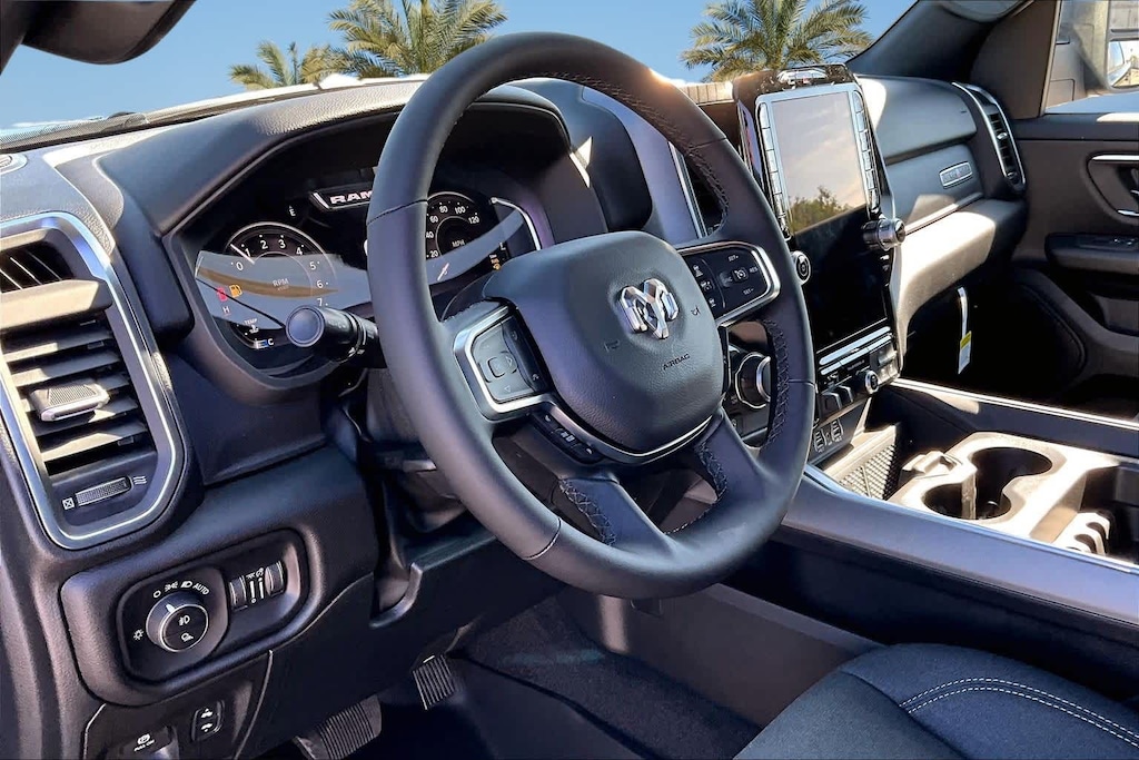 Diamond Black Crystal Pearlcoat 2026 Ram 1500 Big Horn/Lone Star 4WD 8-Speed Automatic HEMI 5.7L V8 Multi Displacement VVT eTorque FRESH OIL CHANGE, 115V Auxiliary Power Outlet, 115V Auxiliary Rear Power Outlet, 12-Way/1-Way Trailer Connector, 12 Touchscreen Display, 2nd Row in Floor Storage Bins, 3 Rear Seat Head Restraints, 33 Gallon Fuel Tank, 4 Way Front Headrests, 4-Wheel Disc Brakes, 400W Inverter, 48V Belt Starter Generator, 4G LTE Wi-Fi Hot Spot, 6 Speakers, 9 Amplified Speakers with Subwoofer, ABS brakes, Accent Color Door Handles, Accent Color Premium Power Mirrors, Accent Color Tailgate Handle, Air Conditioning, Air Conditioning ATC with Dual Zone Control, Alloy wheels, AM/FM radio, Anti-Spin Differential Rear Axle, Apple CarPlay, Apple CarPlay/Android Auto, Auto High-beam Headlights, Auto Power-Folding Mirrors, Auto-Dimming Exterior Driver Mirror, Auto-Dimming Rear-View Mirror, Big Horn Level 2 Equipment Group, Black Exterior Mirrors, Black Exterior Truck Badging, Black Headlamp Bezels, Black Interior Accents, Black Painted Exterior Mirrors Caps, Black Premium Power Mirrors, Black Tail Lamp Bezels, Black Trailer Tow Power Mirrors, Body Color Fender Flares, Body Color Front Bumper, Body Color Rear Bumper with Step Pads, Brake assist, Bucket Seats, Bumpers: chrome, Center Console Parts Module, Cloth Bucket Seats, Cluster 12 TFT Color Display, Cluster 7.0 TFT Color Display, Compass, Configurable Drive Mode, Connected Travel and Traffic Services, Connectivity - US/Canada, Convex Wide-Angle Exterior Mirror Insert, Delay-off headlights, Deluxe Cloth Bucket Seats, Disassociated Touchscreen Display, Driver door bin, Dual Exhaust with Black Tips, Dual front impact airbags, Dual front side impact airbags, Electronic Stability Control, Exterior Mirrors Courtesy Lamps, Exterior Mirrors with Heating Element, Exterior Mirrors with Supplemental Signals, Front anti-roll bar, Front Bucket Seats, Front Center Armrest w/Storage, Front fog lights, Front License Plate Bracket, Front reading lights, Front Seat Back Map Pockets, Front wheel independent suspension, Full Length Floor Console, Fully automatic headlights, Global Telematics Box Module, Glove Box Lamp, Google Android Auto, GPS Antenna Input, GPS Navigation, Grille Black Surround Black Mesh, HD Radio, Heated door mirrors, Heated Front Seats, Heated Steering Wheel, Illuminated entry, Integrated Center Stack Radio, Integrated Voice Command with Bluetooth, Leather Wrapped Steering Wheel, LED Dome Lamp with on/Off Switch, LED Footwell Lighting, Lone Star Badge, Low tire pressure warning, Manual Adjust 4-Way Driver Seat, Manual Adjust 4-Way Front Passenger Seat, Manual Folding Exterior Mirrors, Manuarl Telescoping Mirrors, Manufacturers Statement of Origin, Media Hub with 2 Charge Only USBs, Mirror Clearance/Running Lights, MOPAR Front and Rear Rubber Floor Mats, Night Edition, Occupant sensing airbag, Outside temperature display, Overhead airbag, Overhead console, Overhead LED Lamps, Panic alarm, ParkView Rear Back-Up Camera, Passenger door bin, Passenger vanity mirror, Power 2-Way Driver Lumbar Adjust, Power Adjust 8-Way Driver Seat, Power Adjustable Pedals, Power door mirrors, Power steering, Power windows, Power-Adjustable Convex Aux Mirrors, Premium Overhead Console, Quick Order Package 27R Lone Star, Radio data system, Radio: Uconnect 5 Navigation with 12.0 Display, Radio: Uconnect 5 W with 8.4 Display, RAM Grille Badge - Black, RAM Grille Badge - Chrome, Rear 60/40 Folding Seat, Rear anti-roll bar, Rear Center Armrest, Rear Power Sliding Window, Rear step bumper, Rear Window Defroster, Remote keyless entry, Remote Tailgate Release, Security Alarm, SiriusXM Radio Service, SiriusXM with 360L, Speed control, Steering Wheel Mounted Audio Controls, Sun Visors with Illuminated Vanity Mirrors, Supplier Part Tracking (J-1), Surround View Ca Price includes: $1000 - 2026 Central BC Retail Bonus Cash . Exp. 01/05/2026 $3500 - 2026 National Retail Consumer Cash . Exp. 01/05/2026