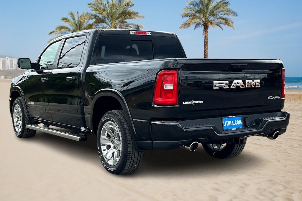 New Price! Diamond Black Crystal Pearlcoat 2026 Ram 1500 Big Horn/Lone Star 4WD 8-Speed Automatic 3.0L I6 FRESH OIL CHANGE, 115V Auxiliary Power Outlet, 115V Auxiliary Rear Power Outlet, 12 Touchscreen Display, 2nd Row In Floor Storage Bins, 3 Rear Seat Head Restraints, 4 Way Front Headrests, 4-Wheel Disc Brakes, 400W Inverter, 48V Belt Starter Generator, 4G LTE Wi-Fi Hot Spot, 6 Speakers, 9 Amplified Speakers w/Subwoofer, ABS brakes, Air Conditioning, Air Conditioning ATC w/Dual Zone Control, Alloy wheels, AM/FM radio, Apple CarPlay, Apple CarPlay/Android Auto, Auto High-beam Headlights, Auto Power-Folding Mirrors, Auto-Dimming Exterior Driver Mirror, Auto-Dimming Rear-View Mirror, Big Horn Level 2 Equipment Group, Black Exterior Mirrors, Black Interior Accents, Black Premium Power Mirrors, Body Color Door Handles, Body Color Fender Flares, Body Color Front Bumper, Body Color Rear Bumper w/Step Pads, Body Color Tailgate Handle, Brake assist, Bucket Seats, Bumpers: chrome, Center Console Parts Module, Cloth Bucket Seats, Cluster 7.0 TFT Color Display, Compass, Configurable Drive Mode, Connected Travel & Traffic Services, Connectivity - US/Canada, Convex Wide-Angle Exterior Mirror Insert, Delay-off headlights, Deluxe Cloth Bucket Seats, Disassociated Touchscreen Display, Driver door bin, Dual front impact airbags, Dual front side impact airbags, Electronic Stability Control, Exterior Mirrors Courtesy Lamps, Exterior Mirrors w/Heating Element, Exterior Mirrors w/Supplemental Signals, Front anti-roll bar, Front Bucket Seats, Front Center Armrest w/Storage, Front fog lights, Front License Plate Bracket, Front reading lights, Front Seat Back Map Pockets, Front wheel independent suspension, Full Length Floor Console, Fully automatic headlights, Global Telematics Box Module (TBM), Glove Box Lamp, Google Android Auto, GPS Antenna Input, GPS Navigation, Grille Surround 1 Body Color Texture 1 Black, HD Radio, Heated door mirrors, Heated Front Seats, Heated Steering Wheel, Illuminated entry, Integrated Center Stack Radio, Integrated Voice Command w/Bluetooth, Leather Wrapped Steering Wheel, LED Dome Lamp w/On/Off Switch, LED Footwell Lighting, Lone Star Badge, Low tire pressure warning, Manual Adjust 4-Way Driver Seat, Manual Adjust 4-Way Front Passenger Seat, Manual Folding Exterior Mirrors, Manufacturers Statement of Origin, Media Hub w/2 Charge Only USBs, Occupant sensing airbag, Outside temperature display, Overhead airbag, Overhead console, Overhead LED Lamps, Panic alarm, ParkView Rear Back-Up Camera, Passenger door bin, Passenger vanity mirror, Power 2-Way Driver Lumbar Adjust, Power Adjust 8-Way Driver Seat, Power Adjustable Pedals, Power door mirrors, Power steering, Power windows, Premium Overhead Console, Quick Order Package 21R Lone Star (Regional), Radio data system, Radio: Uconnect 5 Nav w/12.0 Display, Radio: Uconnect 5 W w/8.4 Display, RAM Grille Badge - Chrome, Rear 60/40 Folding Seat, Rear anti-roll bar, Rear Center Armrest, Rear Power Sliding Window, Rear step bumper, Rear Wheelhouse Liners, Rear Window Defroster, Remote keyless entry, Remote Tailgate Release, Security Alarm, SiriusXM Radio Service, SiriusXM w/360L, Speed control, Sport Appearance Package, Steering Wheel Mounted Audio Controls, Sun Visors w/Illuminated Vanity Mirrors, Supplier Part Tracking (J-1), Tachometer, Telescoping steering wheel, Tilt steering wheel, Traction control, Trip computer, Universal Garage Door Opener, USB Host Flip, Variably intermittent wipers, Voltmeter, Wheels: 18 x 8 Cast-Aluminum Painted, Wheels: 20 x 9 Aluminum Chrome Clad, Wheels: 20 x 9 Aluminum Chrome Clad (WRK). Price includes: $3500 - 2026 National Retail Consumer Cash . Exp. 12/01/2025