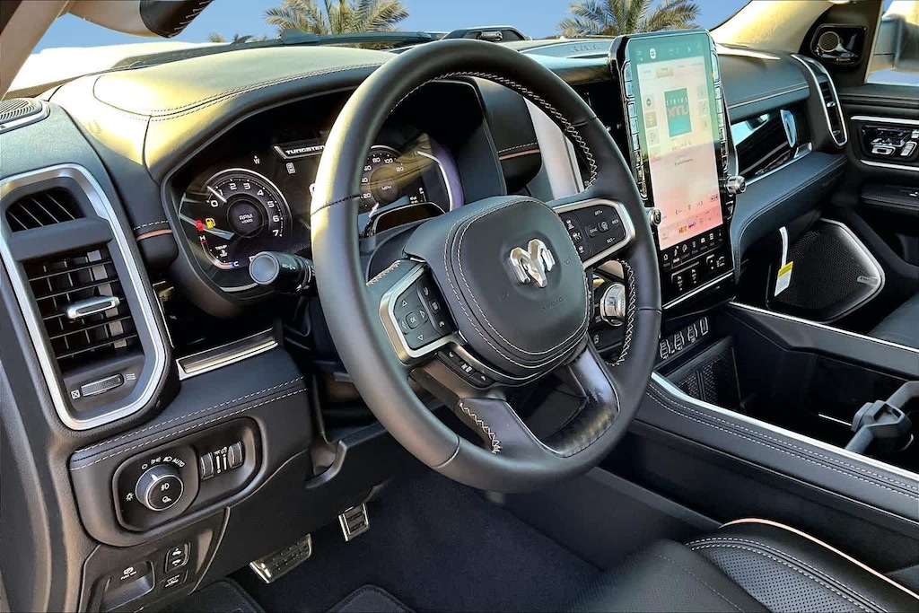 Ivory White Tri-Coat Pearlcoat 2026 Ram 1500 Tungsten 4WD 8-Speed Automatic 3.0L I6 FRESH OIL CHANGE, 12-Way/1-Way Trailer Connector, 3.92 Rear Axle Ratio, 4-Wheel Disc Brakes, ABS brakes, Adjustable pedals, Air Conditioning, Alloy wheels, AM/FM radio, Apple CarPlay/Android Auto, Audio memory, Auto High-beam Headlights, Auto Power-Folding Mirrors, Auto-dimming door mirrors, Auto-Dimming Exterior Driver Mirror, Auto-dimming Rear-View mirror, Auto-leveling suspension, Automatic temperature control, Bodyside moldings, Brake assist, Bumpers: body-color, Chrome Exterior Mirrors, Compass, Delay-off headlights, Driver door bin, Driver vanity mirror, Dual front impact airbags, Dual front side impact airbags, Electronic Stability Control, Exterior Mirrors Courtesy Lamps, Exterior Mirrors with Heating Element, Exterior Mirrors with Memory, Exterior Mirrors with Supplemental Signals, Exterior Parking Camera Rear, Front anti-roll bar, Front Bucket Seats, Front Center Armrest w/Storage, Front dual zone A/C, Front fog lights, Front License Plate Bracket, Front reading lights, Front wheel independent suspension, Fully automatic headlights, Garage door transmitter, Heads-Up Display, Heated door mirrors, Heated front seats, Heated rear seats, Heated steering wheel, Illuminated entry, Leather steering wheel, Low tire pressure warning, Manufacturers Statement of Origin, Memory seat, Multi-Function Tailgate, Navigation System, Occupant sensing airbag, Outside temperature display, Overhead airbag, Overhead console, Panic alarm, Passenger door bin, Passenger vanity mirror, Pedal memory, Power adjustable front head restraints, Power door mirrors, Power driver seat, Power moonroof, Power passenger seat, Power steering, Power windows, Premium Leather Bucket Seats, Quick Order Package 22V Tungsten, Radio data system, Radio: Uconnect 5 Nav with 14.4 Display, Rain sensing wipers, RAMs Head Badge, Rear anti-roll bar, Rear reading lights, Rear seat center armrest, Rear step bumper, Rear window defroster, Remote keyless entry, Remote Tailgate Release, Security system, Speed control, Split folding rear seat, Steering wheel mounted audio controls, Tachometer, Telescoping steering wheel, Tilt steering wheel, Traction control, Trip computer, Turn signal indicator mirrors, Variably intermittent wipers, Ventilated front seats, Ventilated rear seats, Voltmeter, Wheels: 22 x 9 Polish/Painted with Inserts.