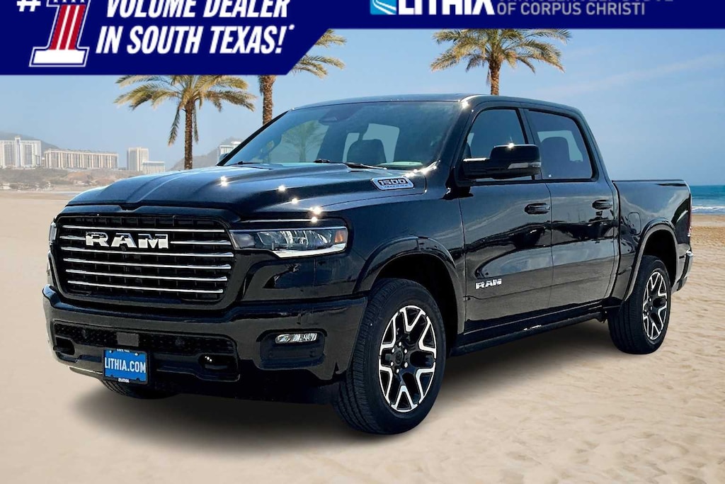 Diamond Black Crystal Pearlcoat 2026 Ram 1500 Laramie RWD 8-Speed Automatic 3.0L I6 FRESH OIL CHANGE, 10 Speakers, 3.21 Rear Axle Ratio, 4-Wheel Disc Brakes, 4G LTE Wi-Fi Hot Spot, ABS brakes, Accent Color Premium Power Mirrors, Air Conditioning, Alloy wheels, AM/FM radio: SiriusXM with 360L, Apple CarPlay, Apple CarPlay/Android Auto, Audio memory, Auto High-beam Headlights, Auto Power-Folding Mirrors, Auto-dimming door mirrors, Auto-Dimming Exterior Driver Mirror, Auto-dimming Rear-View mirror, Automatic temperature control, Black Painted Exterior Mirrors Caps, Body Color Front Bumper, Body Color Rear Bumper w/Step Pads, Brake assist, Bumpers: chrome, Chrome Exterior Mirrors, Compass, Connected Travel & Traffic Services, Connectivity - US/Canada, Convex Wide-Angle Exterior Mirror Insert, Delay-off headlights, Disassociated Touchscreen Display, Dome Dual LED Reading Lamp, Driver door bin, Driver vanity mirror, Dual front impact airbags, Dual front side impact airbags, Dual-Pane Panoramic Sunroof, Electronic Stability Control, Exterior Mirrors Courtesy Lamps, Exterior Mirrors w/Heating Element, Exterior Mirrors w/Memory, Exterior Mirrors w/Supplemental Signals, Exterior Parking Camera Rear, Front anti-roll bar, Front Bucket Seats, Front Center Armrest w/Storage, Front dual zone A/C, Front fog lights, Front License Plate Bracket, Front reading lights, Front wheel independent suspension, Fully automatic headlights, Garage door transmitter, Global Telematics Box Module (TBM), Google Android Auto, GPS Antenna Input, GPS Navigation, Grille Surround 3 Body Color Tex 4 Chrome, HD Radio, Heated door mirrors, Heated front seats, Heated rear seats, Heated steering wheel, Illuminated entry, Integrated Center Stack Radio, Integrated Voice Command w/Bluetooth, Laramie Level 1 Equipment Group, Laramie Southwest Edition, Leather steering wheel, Leather Trimmed Bucket Seats, LED Dome/Reading Lamp, Low tire pressure warning, Manufacturers Statement of Origin, Memory seat, MOPAR Front & Rear Rubber Floor Mats, MOPAR Lockable Console Storage, Navigation System, Occupant sensing airbag, Outside temperature display, Overhead airbag, Overhead console, Panic alarm, Passenger door bin, Passenger vanity mirror, Power Deployable Running Boards, Power door mirrors, Power driver seat, Power passenger seat, Power steering, Power windows, Quick Order Package 21H Laramie, Radio data system, Radio: Uconnect 5 Nav w/12.0 Display, Rain Sensitive Windshield Wipers, RAM Grille Badge - Chrome, Rear anti-roll bar, Rear reading lights, Rear seat center armrest, Rear step bumper, Remote keyless entry, Remote Tailgate Release, Secondary Active Grille Shutters, Security system, SiriusXM Radio Service, SiriusXM w/360L, Speed control, Split folding rear seat, Steering wheel mounted audio controls, Tachometer, Telescoping steering wheel, Tilt steering wheel, Tow Hooks, Traction control, Trailer Brake Control, Trip computer, Turn signal indicator mirrors, USB Host Flip, Variably intermittent wipers, Ventilated front seats, Voltmeter, Wheels: 20 x 9 Premium Paint/Polish, Wireless Charging Pad. Price includes: $3500 - 2026 National Retail Consumer Cash . Exp. 11/03/2025