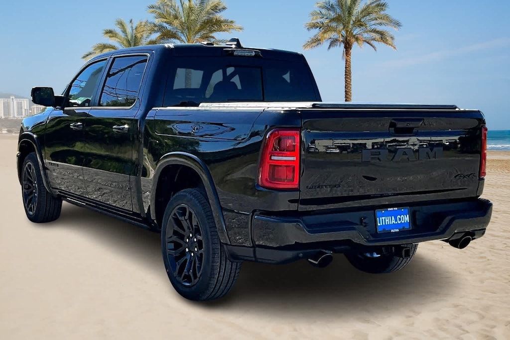 Diamond Black Crystal Pearlcoat 2026 Ram 1500 Limited 4WD 8-Speed Automatic 3.0L I6 FRESH OIL CHANGE, 12-Way/1-Way Trailer Connector, 14.4 Touchscreen Display, 19 Speakers, 240 Amp Alternator, 3.92 Rear Axle Ratio, 4-Wheel Disc Brakes, 4G LTE Wi-Fi Hot Spot, ABS brakes, Accent Color Door Handles, Accent Color Premium Power Mirrors, Accent Color Tailgate Handle, Active Noise Control System, Adjustable pedals, Air Conditioning, Alloy wheels, AM/FM radio, Apple CarPlay, Apple CarPlay/Android Auto, Audio memory, Auto High-beam Headlights, Auto Power-Folding Mirrors, Auto-dimming door mirrors, Auto-Dimming Exterior Driver Mirror, Auto-dimming Rear-View mirror, Auto-leveling suspension, Automatic temperature control, Black Day Light Opening Moldings, Black Exterior Truck Badging, Black Grille Surround Texture 7 Black, Black Headlamp Bezels, Black Painted Exterior Mirrors Caps, Black Tail Lamp Bezels, Body Color Front Bumper, Body Color Rear Bumper w/Step Pads, Bodyside moldings, Brake assist, Bumpers: chrome, Chrome Exterior Mirrors, Compass, Connected Travel & Traffic Services, Connectivity - US/Canada, Convex Wide-Angle Exterior Mirror Insert, Delay-off headlights, Disassociated Touchscreen Display, Dome Dual LED Reading Lamp, Driver door bin, Driver vanity mirror, Drowsy Driver Detection, Dual Exhaust w/Black Tips, Dual front impact airbags, Dual front side impact airbags, Dual-Pane Panoramic Sunroof, Electronic Stability Control, Evasive Steer Assist, Exterior 115V AC Outlet, Exterior Mirrors Courtesy Lamps, Exterior Mirrors w/Heating Element, Exterior Mirrors w/Memory, Exterior Mirrors w/Supplemental Signals, Exterior Parking Camera Rear, Front anti-roll bar, Front Bucket Seats, Front Center Armrest w/Storage, Front dual zone A/C, Front fog lights, Front License Plate Bracket, Front reading lights, Front wheel independent suspension, Fully automatic headlights, Garage door transmitter, Genuine wood console insert, Genuine wood dashboard insert, Genuine wood door panel insert, Global Telematics Box Module (TBM), Google Android Auto, GPS Antenna Input, GPS Navigation, Hands-Free Active Driving Assist System, HD Radio, Heads-Up Display, Heated door mirrors, Heated front seats, Heated rear seats, Heated steering wheel, Illuminated entry, Integrated Center Stack Radio, Integrated Voice Command w/Bluetooth, Intersection Collision Assist System, Leather steering wheel, LED CHMSL Lamp, LED Dome/Reading Lamp, Limited Level A Equipment Group, Low tire pressure warning, Manufacturers Statement of Origin, Memory seat, Navigation System, Night Edition, Occupant sensing airbag, Outside temperature display, Overhead airbag, Overhead console, Panic alarm, Passenger door bin, Passenger vanity mirror, Pedal memory, Pirelli Brand Tires, Power door mirrors, Power driver seat, Power passenger seat, Power steering, Power windows, Premium Quilted Leather Bucket Seats, Quick Order Package 22M Limited, Radio data system, Radio: Uconnect 5 Nav w/12.0 Display, Radio: Uconnect 5 Nav w/14.4 Display, Rain sensing wipers, RAM Grille Badge - Black, RamBox Cargo Management System, Rear anti-roll bar, Rear reading lights, Rear seat center armrest, Rear step bumper, Rear window defroster, Remote keyless entry, Security system, SiriusXM Radio Service, SiriusXM w/360L, Smartphone As A Key Capable, Speed control, Split folding rear seat, Sport Performance Hood, Steering wheel mounted audio controls, Surround View Camera System, Tachometer, Telescoping steering wheel, Tilt steering wheel, Traction control, Traffic Sign Recognition, Tri-Fold Tonneau Cover, Trip computer, Turn signal indicator mirrors, USB Host Flip, Variably intermittent wipers, Ventilated front seats, Ventilated rear seats, Voltmeter, Wheels: 20 x 9 Premium Paint/Polished, Wheels: 22 x 9 Premium Black Aluminum. Price includes: $2000 - 2026 National Retail Consumer Cash . Exp. 12/01/2025
