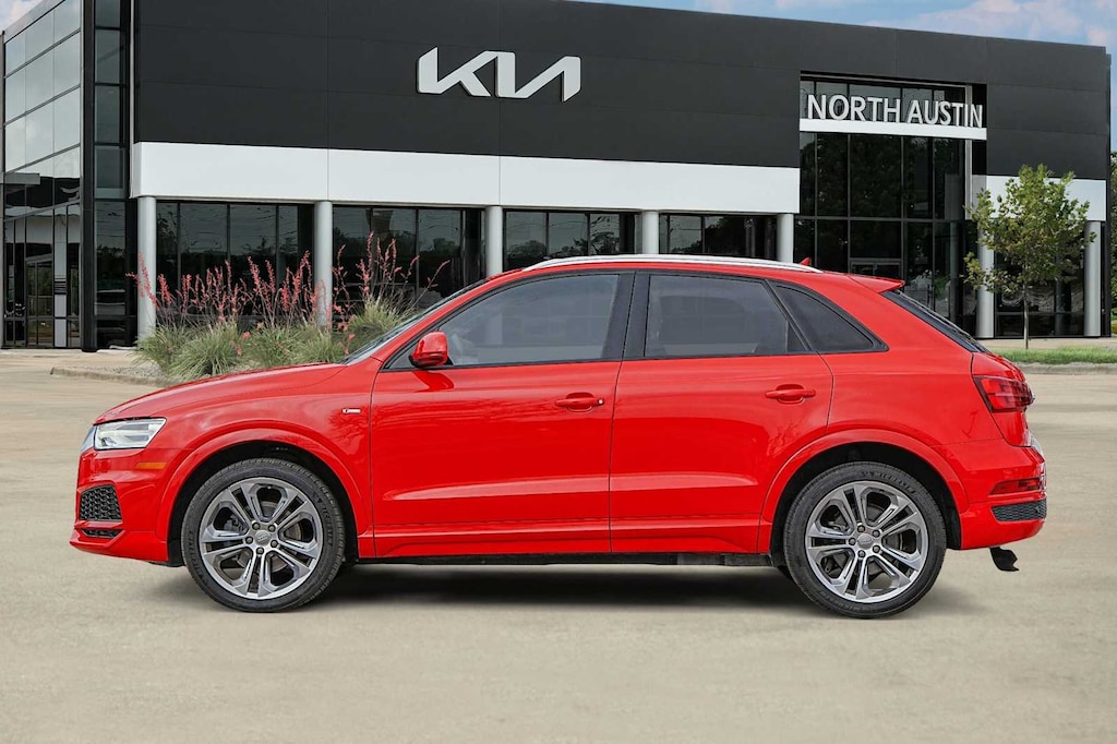 Q3 2.0T Premium, Misano Red Pearl, Black Leather, 10 Speakers, 4-Wheel Disc Brakes, ABS brakes, Air Conditioning, Alloy wheels, AM/FM radio: SiriusXM, Automatic temperature control, Axle Ratio: TBD, Brake assist, Bumpers: body-color, CD player, Delay-off headlights, Driver door bin, Driver vanity mirror, Dual front impact airbags, Dual front side impact airbags, Electronic Stability Control, Exterior Parking Camera Rear, Four wheel independent suspension, Front anti-roll bar, Front Bucket Seats, Front Center Armrest, Front dual zone A/C, Front fog lights, Front reading lights, Fully automatic headlights, Heated door mirrors, Heated Front Seats, High intensity discharge headlights: Xenon plus, Illuminated entry, Leather Seating Surfaces, Leather Shift Knob, Leather steering wheel, Low tire pressure warning, Occupant sensing airbag, Outside temperature display, Overhead airbag, Overhead console, Panic alarm, Passenger door bin, Passenger vanity mirror, Power door mirrors, Power driver seat, Power moonroof, Power Passenger Seat, Power steering, Power windows, Radio data system, Rain sensing wipers, Rear anti-roll bar, Rear fog lights, Rear reading lights, Rear seat center armrest, Rear window defroster, Rear window wiper, Remote keyless entry, Roof rack: rails only, Security system, Speed control, Speed-sensing steering, Split Folding Fear Seat, Spoiler, Steering wheel mounted audio controls, Tachometer, Telescoping steering wheel, Tilt steering wheel, Traction control, Trip computer, Turn signal indicator mirrors, Variably intermittent wipers, Q3 2.0T Premium, Misano Red Pearl, Black Leather.