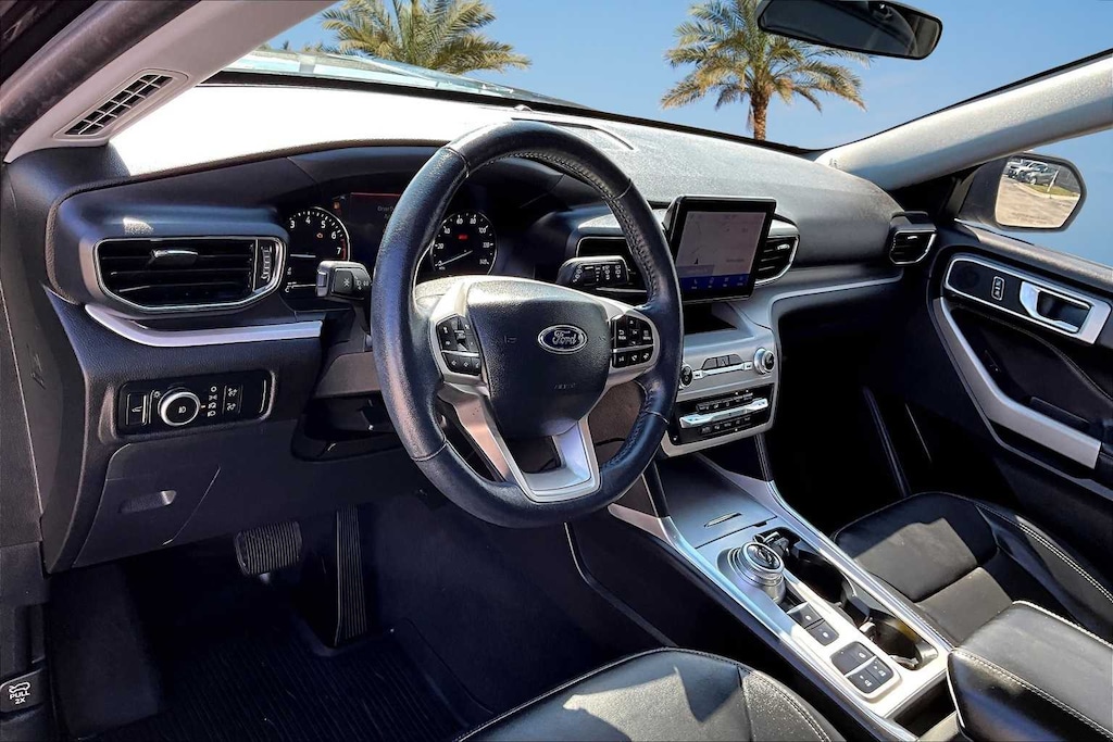 FRESH OIL CHANGE, 20 Premium Painted Aluminum Wheels, 3.58 Non-Limited-Slip Rear Axle Ratio, 3rd row seats: bench, 4-Wheel Disc Brakes, 4G LTE Wi-Fi Hotspot Credit, 6 Speakers, ABS brakes, Air Conditioning, Alloy wheels, AM/FM radio: SiriusXM, AM/FM Stereo, Auto High-beam Headlights, Auto Start-Stop Removal (DISC), Automatic temperature control, Brake assist, Bumpers: body-color, Compass, Delay-off headlights, Driver door bin, Driver vanity mirror, Dual front impact airbags, Dual front side impact airbags, Electronic Stability Control, Emergency communication system: SYNC 3 911 Assist, Equipment Group 202A, Evasive Steering Assist, Exterior Parking Camera Rear, Ford Co-Pilot360 Assist+, FordPass Connect, Four wheel independent suspension, Front & Second Row Floor Liners (16B), Front anti-roll bar, Front Bucket Seats, Front Center Armrest, Front dual zone A/C, Front reading lights, Fully automatic headlights, Heated ActiveX Captains Chairs, Heated door mirrors, Heated front seats, Heated Steering Wheel, Heated Unique Cloth Captains Chairs, Illuminated entry, Intelligent Adaptive Cruise Control, Knee airbag, Leather steering wheel, LED Fog Lamps, Low tire pressure warning, Occupant sensing airbag, Outside temperature display, Overhead airbag, Overhead console, Panic alarm, Passenger door bin, Passenger vanity mirror, Power door mirrors, Power driver seat, Power Liftgate, Power passenger seat, Power steering, Power windows, Rear air conditioning, Rear anti-roll bar, Rear Auxiliary Controls Credit, Rear reading lights, Rear window defroster, Rear window wiper, Remote keyless entry, Remote Start System, Roof rack: rails only, SecuriCode Keyless Entry Keypad, Security system, Speed control, Speed Sign Recognition, Speed-sensing steering, Speed-Sensitive Wipers, Split folding rear seat, Spoiler, Steering wheel mounted audio controls, SYNC 3 Communications & Entertainment System, SYNC 3/Apple CarPlay/Android Auto, Tachometer, Telescoping steering wheel, Tilt steering wheel, Traction control, Trip computer, Variably intermittent wipers, Voice-Activated Touchscreen Navigation System, Wheels: 18 5-Spoke Silver-Painted Aluminum. Odometer is 15367 miles below market average! 21/28 City/Highway MPG Agate Black Metallic 2023 Ford Explorer XLT RWD 10-Speed Automatic 2.3L EcoBoost I-4