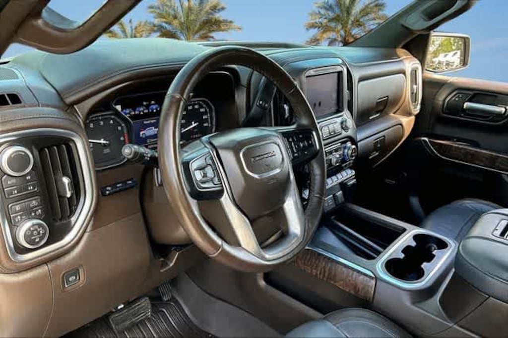 FRESH OIL CHANGE, 10-Speed Automatic, 4WD, Dark Walnut/Dark Ash Grey Leather, 10-Way Power Driver Seat Adjuster w/Lumbar, 10-Way Power Passenger Seat Adjuster w/Lumbar, 12-Volt Rear Auxiliary Power Outlet, 120-Volt Bed Mounted Power Outlet, 120-Volt Instrument Panel Power Outlet, 170 Amp Alternator, 2 USB Ports, 2 USB Ports (1st Row), 3.23 Rear Axle Ratio, 4-Wheel Disc Brakes, 7 Speakers, ABS brakes, Adaptive Ride Control Suspension, Adaptive suspension, Air Conditioning, Alloy wheels, AM/FM radio: SiriusXM, Apple CarPlay/Android Auto, Auto-dimming door mirrors, Auto-dimming Rear-View mirror, Automatic temperature control, Auxiliary External Transmission Oil Cooler, Brake assist, Bumpers: body-color, Chrome Assist Steps, Chrome Recovery Hooks, Color-Keyed Carpeting Floor Covering, Compass, Deep-Tinted Glass, Delay-off headlights, Driver Alert Package I, Driver Alert Package II, Driver door bin, Driver Memory, Driver vanity mirror, Dual front impact airbags, Dual front side impact airbags, Electric Rear-Window Defogger, Electrical Lock Control Steering Column, Electronic Stability Control, Floor Mounted Console, Following Distance Indicator, Forge Perforated Leather-Appointed Seat Trim, Forward Collision Alert, Front anti-roll bar, Front Bucket Seats, Front Center Armrest, Front dual zone A/C, Front fog lights, Front License Plate Kit, Front Pedestrian Braking, Front reading lights, Front wheel independent suspension, Fully automatic headlights, Garage door transmitter, Genuine wood console insert, Genuine wood door panel insert, GMC 4G LTE, GMC Connected Access, GMC MultiPro Power Steps, HD Radio, HD Rear Vision Camera, HD Surround Vision, Heated 2nd Row Outboard Seats, Heated door mirrors, Heated Driver & Front Passenger Seating, Heated front seats, Heated rear seats, Heated steering wheel, Heavy-Duty Rear Locking Differential, High-Capacity Air Filter, Hill Descent Control, Hitch Guidance, Hitch Guidance w/Hitch View, Illuminated entry, In-Vehicle Trailering App, Integrated Trailer Brake Controller, IntelliBeam Automatic High Beam On/Off, Keyless Open & Start, Lane Change Alert w/Side Blind Zone Alert, Lane Keep Assist w/Lane Departure Warning, LED Cargo Area Lighting, Low Speed Forward Automatic Braking, Low tire pressure warning, Manual Tilt-Wheel & Telescoping Steering Column, Memory seat, Multi-Color 15 Diagonal Head-Up Display, Navigation System, Occupant sensing airbag, OnStar & GMC Connected Services Capable, Outside temperature display, Overhead airbag, Overhead console, Panic alarm, Passenger door bin, Passenger vanity mirror, Power Door Locks, Power door mirrors, Power driver seat, Power Front Passenger Windows w/Express Up/Down, Power Front Windows w/Driver Express Up/Down, Power passenger seat, Power Rear Windows w/Express Down, Power Sliding Rear Window w/Rear Defogger, Power steering, Power Sunroof, Power windows, Preferred Equipment Group 5SA, Premium audio system: GMC Infotainment System, Premium Bose 7-Speaker Sound System, Radio data system, Radio: Premium GMC Infotainment Sys w/Navigation, Rear Camera Mirror, Rear Cross Traffic Alert, Rear Dual USB Charging-Only Ports, Rear reading lights, Rear seat center armrest, Rear step bumper, Rear Wheelhouse Liners, Rear window defroster, Remote keyless entry, Remote Vehicle Starter System, Safety Alert Seat, Security system, Signature Denali Grille, SiriusXM Radio, Speed control, Speed-sensing steering, Split folding rear seat, Spray-On Pickup Bed Liner w/Denali Logo, Steering Wheel Audio Controls, Steering wheel mounted audio controls, Tachometer, Technology Package, Telescoping steering wheel, Theft Deterrent System (Unauthorized Entry), Tilt steering wheel, Traction control, Trailering Package, Trip computer, Ultrasonic Front & Rear Park Assist, Universal Home Remote, Variably intermittent wipers, Ventilated Driver & Front Passenger Seats, Ventilated front seats, Voltmeter, Wheels: 20 x 9 Multi-Dimensional Polished Alum, Wireless Charging, 10-Speed Automatic,