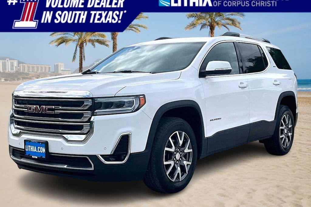 FRESH OIL CHANGE, FWD, Jet Black Leather, 18 Aluminum Wheels, 3.47 Final Drive Axle Ratio, 3rd row seats: split-bench, 4-Way Manual Passenger Seat Adjuster, 4-Wheel Disc Brakes, 6-Passenger (2-2-2 Seating Configuration), 7-Passenger (2-3-2 Seating Configuration), 8 Speakers, 8-Way Power Driver Seat Adjuster, ABS brakes, Air Conditioning, Alloy wheels, AM/FM radio: SiriusXM with 360L, Apple CarPlay/Android Auto, Auto High-beam Headlights, Auto-dimming Rear-View mirror, Automatic temperature control, Bose Premium 8-Speaker Audio System Feature, Brake assist, Bumpers: body-color, Compass, Delay-off headlights, Deleted 3 Years of OnStar & Connected Services Plan, Driver door bin, Driver vanity mirror, Dual front impact airbags, Dual front side impact airbags, Electronic Stability Control, Emergency communication system: OnStar and GMC connected services capable, Four wheel independent suspension, Front anti-roll bar, Front Bucket Seats, Front Center Armrest, Front dual zone A/C, Front fog lights, Front License Plate Bracket, Front reading lights, Fully automatic headlights, Garage door transmitter, Heated door mirrors, Heated Driver & Front Passenger Seats, Heated front seats, Illuminated entry, Knee airbag, Low tire pressure warning, Navigation System, Occupant sensing airbag, Outside temperature display, Overhead airbag, Overhead console, Panic alarm, Passenger door bin, Passenger vanity mirror, Perforated Leather-Appointed Seat Trim, Power door mirrors, Power Driver Lumbar Control Seat Adjuster, Power driver seat, Power Liftgate, Power steering, Power windows, Preferred Equipment Group 4SA, Radio data system, Radio: AM/FM 8 Diagonal Multi-Touch Navigation, Rear air conditioning, Rear anti-roll bar, Rear reading lights, Rear window defroster, Rear window wiper, Remote keyless entry, Security system, SiriusXM w/360L, Speed control, Speed-sensing steering, Spoiler, Steering wheel mounted audio controls, Tachometer, Telescoping steering wheel, Tilt steering wheel, Traction control, Trip computer, Turn signal indicator mirrors, Variably intermittent wipers, Voltmeter, Wireless Apple CarPlay/Wireless Android Auto, FWD, Jet Black Leather. Odometer is 1703 miles below market average! 22/29 City/Highway MPG Summit White 2023 GMC Acadia SLT FWD 9-Speed Automatic 2.0L Turbocharged