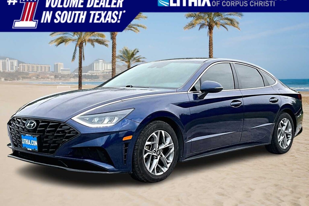 FRESH OIL CHANGE, Dark Gray Cloth, 4-Wheel Disc Brakes, 6 Speakers, ABS brakes, Air Conditioning, Alloy wheels, AM/FM radio: SiriusXM, Apple CarPlay & Android Auto, Auto High-beam Headlights, Automatic temperature control, Blue Link Connected Care & Remote Package, Brake assist, Bumpers: body-color, Carpeted Floor Mats, Delay-off headlights, Driver door bin, Driver vanity mirror, Dual front impact airbags, Dual front side impact airbags, Electronic Stability Control, Emergency communication system: Blue Link Connected Care (3-year subscription), Exterior Parking Camera Rear, Four wheel independent suspension, Front anti-roll bar, Front Bucket Seats, Front Center Armrest, Front dual zone A/C, Front reading lights, Fully automatic headlights, Heated door mirrors, Heated Front Bucket Seats, Heated front seats, Illuminated entry, Knee airbag, Low tire pressure warning, Occupant sensing airbag, Option Group 01, Outside temperature display, Overhead airbag, Overhead console, Panic alarm, Passenger door bin, Passenger vanity mirror, Power door mirrors, Power driver seat, Power steering, Power windows, Premium Cloth Seating Surfaces, Radio data system, Radio: AM/FM/MP3/HD/SiriusXM Display Audio, Rear anti-roll bar, Rear Bumper Applique, Rear seat center armrest, Rear side impact airbag, Rear window defroster, Remote keyless entry, Security system, Speed control, Speed-sensing steering, Speed-Sensitive Wipers, Split folding rear seat, Steering wheel mounted audio controls, Tachometer, Telescoping steering wheel, Tilt steering wheel, Traction control, Trip computer, Turn signal indicator mirrors, Variably intermittent wipers, Wheel Locks, Wheels: 17 x 7.0J Aluminum Alloy, Dark Gray Cloth. Recent Arrival! Odometer is 50940 miles below market average! 27/37 City/Highway MPG Stormy Sea 2020 Hyundai Sonata SEL FWD 8-Speed Automatic with Overdrive 2.5L I4