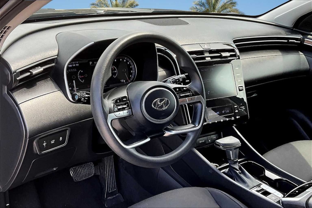 FRESH OIL CHANGE, 3.648 Axle Ratio, 4-Wheel Disc Brakes, 6 Speakers, ABS brakes, Air Conditioning, Alloy wheels, AM/FM radio: SiriusXM, Apple CarPlay & Android Auto, Auto High-beam Headlights, Automatic temperature control, Brake assist, Bumpers: body-color, Delay-off headlights, Driver door bin, Driver vanity mirror, Dual front impact airbags, Dual front side impact airbags, Electronic Stability Control, Emergency communication system: Blue Link Connected Car Service (3-year complimentary subscription), Exterior Parking Camera Rear, Four wheel independent suspension, Front anti-roll bar, Front Bucket Seats, Front Center Armrest, Front dual zone A/C, Front reading lights, Fully automatic headlights, Heated door mirrors, Heated Front Bucket Seats, Heated front seats, Illuminated entry, Low tire pressure warning, Occupant sensing airbag, Option Group 01, Outside temperature display, Overhead airbag, Overhead console, Panic alarm, Passenger door bin, Passenger vanity mirror, Power door mirrors, Power driver seat, Power Liftgate, Power steering, Power windows, Radio data system, Radio: AM/FM/HD Audio System, Rear anti-roll bar, Rear seat center armrest, Rear side impact airbag, Rear window defroster, Rear window wiper, Remote keyless entry, Roof rack: rails only, Security system, Speed control, Split folding rear seat, Spoiler, Stain & Odor Resistant Cloth Seat Trim, Steering wheel mounted audio controls, Tachometer, Telescoping steering wheel, Tilt steering wheel, Traction control, Trip computer, Variably intermittent wipers, Wheels: 17 x 7.0J Alloy, Wheels: 19 x 7.5J Machine-Face Finish Alloy. 25/32 City/Highway MPG Black Pearl 2024 Hyundai Tucson SEL FWD 8-Speed Automatic with SHIFTRONIC 2.5L I4 DGI DOHC 16V LEV3-SULEV30 187hp