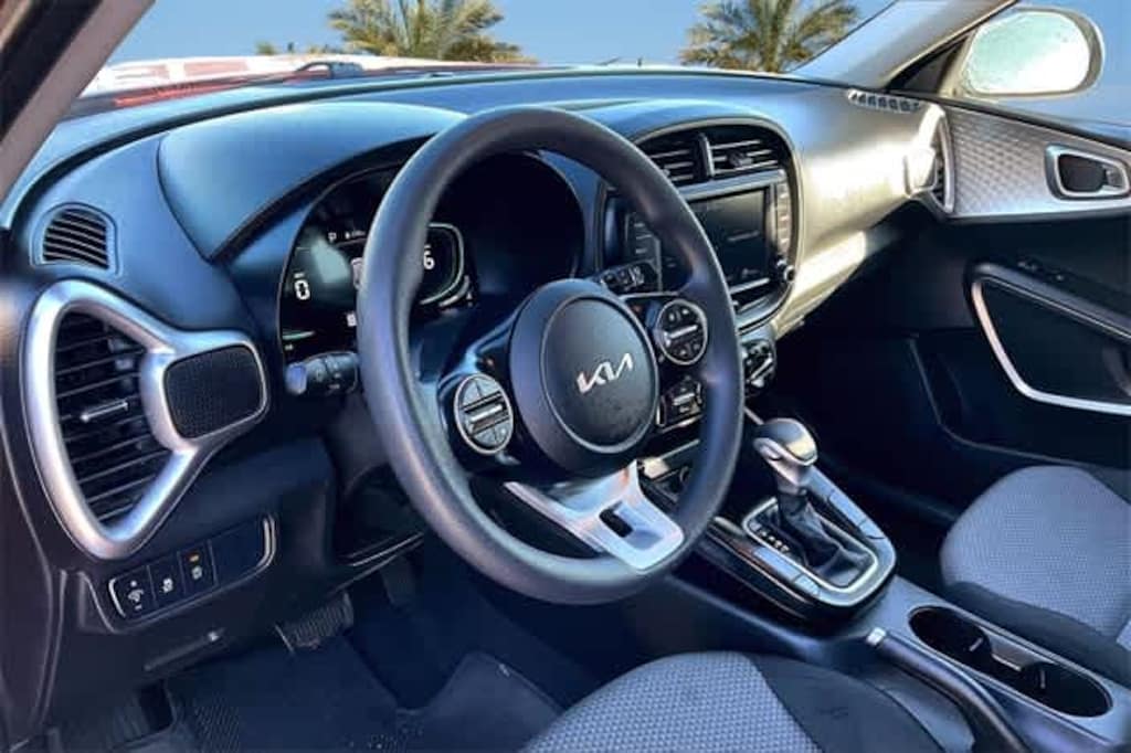 FRESH OIL CHANGE, 4-Wheel Disc Brakes, 6 Speakers, 6.5J x 16 Alloy Wheels, ABS brakes, Air Conditioning, Apple CarPlay & Android Auto, Auto High-beam Headlights, Brake assist, Bumpers: body-color, Carpeted Floor Mats, Compass, Delay-off headlights, Driver door bin, Driver vanity mirror, Dual front impact airbags, Dual front side impact airbags, Electronic Stability Control, Exterior Parking Camera Rear, Front anti-roll bar, Front Bucket Seats, Front Center Armrest, Front reading lights, Front wheel independent suspension, Fully automatic headlights, Illuminated entry, Low tire pressure warning, Occupant sensing airbag, Outside temperature display, Overhead airbag, Overhead console, Panic alarm, Passenger door bin, Passenger vanity mirror, Power door mirrors, Power steering, Power windows, Radio data system, Radio: AM/FM/MP3/HD Audio System, Rear window defroster, Rear window wiper, Remote keyless entry, Speed control, Speed-sensing steering, Split folding rear seat, Steering wheel mounted audio controls, Tachometer, Telescoping steering wheel, Tilt steering wheel, Traction control, Trip computer, Variably intermittent wipers, Woven & Tricot Cloth Seat Trim. 29/35 City/Highway MPG Mars Orange 2024 Kia Soul LX FWD CVT 2.0L I4 DOHC