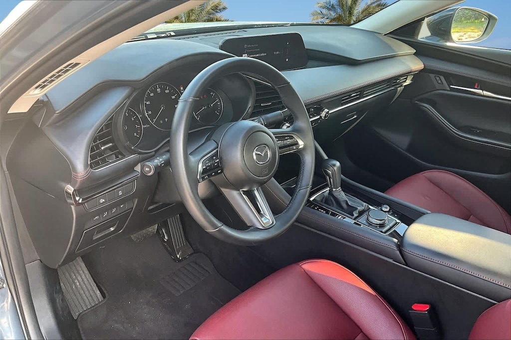 FRESH OIL CHANGE, 4-Wheel Disc Brakes, 8 Speakers, ABS brakes, Air Conditioning, Alloy wheels, AM/FM radio, Auto High-beam Headlights, Automatic temperature control, Brake assist, Bumpers: body-color, Compass, Delay-off headlights, Driver door bin, Driver vanity mirror, Dual front impact airbags, Dual front side impact airbags, Electronic Stability Control, Emergency communication system: Mazda Connected Services (1-year complimentary trial included), Exterior Parking Camera Rear, Front anti-roll bar, Front Bucket Seats, Front Center Armrest, Front dual zone A/C, Front reading lights, Front wheel independent suspension, Fully automatic headlights, Heated door mirrors, Heated front seats, Heated Front Sport Bucket Seats, Illuminated entry, Knee airbag, Leather Seat Trim, Leather Shift Knob, Leather steering wheel, Low tire pressure warning, MAZDA CONNECT Infotainment System, Memory seat, Occupant sensing airbag, Outside temperature display, Overhead airbag, Overhead console, Panic alarm, Passenger door bin, Passenger vanity mirror, Power door mirrors, Power driver seat, Power moonroof, Power steering, Power windows, Radio data system, Radio: AM/FM/HD Audio System, Rain sensing wipers, Rear seat center armrest, Rear side impact airbag, Rear window defroster, Remote keyless entry, Speed control, Speed-sensing steering, Split folding rear seat, Steering wheel mounted audio controls, Tachometer, Telescoping steering wheel, Tilt steering wheel, Traction control, Trip computer, Turn signal indicator mirrors, Variably intermittent wipers, Wheels: 18 x 7J Aluminum Alloy. New Price! Odometer is 1225 miles below market average! 26/35 City/Highway MPG Polymetal Gray Metallic 2025 Mazda Mazda3 2.5 S Carbon Edition AWD 6-Speed Automatic 2.5L I4 DOHC 16V LEV3-SULEV30 191hp
