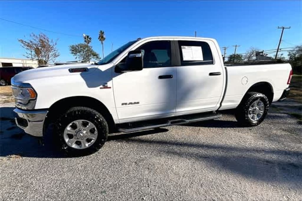 FRESH OIL CHANGE, 2 Way Rear Headrest Seat, 2nd Row In Floor Storage Bins, 3.73 Axle Ratio, 4 Way Front Headrests, 4-Wheel Disc Brakes, 40/20/40 Split Bench Seat, 4G LTE Wi-Fi Hot Spot, 6 Speakers, 8.4 Touchscreen Display, ABS brakes, Active Noise Control System, Air Conditioning, Apple CarPlay, Auto Power-Folding Mirrors, Big Horn IP Badge, Black Exterior Mirrors, Bluetooth Handsfree Phone & Audio, Brake assist, Bumpers: chrome, Center Hub, Center Stack Storage Drawer, Chrome Flat Cab-Length Side Steps, Cloth 40/20/40 Bench Seat, Compass, Connectivity - US/Canada, Delay-off headlights, Driver door bin, Dual front impact airbags, Dual front side impact airbags, Dual Glove Boxes, Electronic Stability Control, Electronically Controlled Throttle, Emergency communication system: SiriusXM Guardian, Exterior Mirrors Courtesy Lamps, Exterior Mirrors w/Heating Element, Exterior Mirrors w/Supplemental Signals, Foam Bottle Insert (Door Trim Panel), Footwell Courtesy Lamp, For Details, Visit DriveUconnect.com, For More Info, Call 800-643-2112, Forward & Reverse Utility Lights, Front anti-roll bar, Front Armrest w/Cupholders, Front Center Armrest w/Storage, Front Center Seat Cushion Storage, Front Fog Lamps, Front License Plate Bracket, Front reading lights, Front Seat Back Map Pockets, Fully automatic headlights, Global Telematics Box Module (TBM), Glove Box Lamp, Google Android Auto, GPS Antenna Input, Heated door mirrors, Illuminated entry, Integrated Center Stack Radio, Integrated Voice Command w/Bluetooth, Leather Wrapped Steering Wheel, Level 1 Equipment Group, Locking Lower Glove Box, Low tire pressure warning, Manual Adjust 4-Way Driver Seat, Manual Adjust 4-Way Front Passenger Seat, Manufacturers Statement of Origin, Mirror Running Lights, Occupant sensing airbag, Outside temperature display, Overhead airbag, Overhead console, Panic alarm, ParkView Rear Back-Up Camera, Passenger door bin, Passenger vanity mirror, Power 2-Way Driver Lumbar Adjust, Power Adjust 8-Way Driver Seat, Power Adjust Mirrors, Power Adjustable Convex Aux Mirrors, Power door mirrors, Power Heated Fold Telescope Mirrors, Power steering, Power Telescoping Mirrors, Power windows, Premium Cloth 40/20/40 Bench Seat (DISC), Quick Order Package 2HZ Big Horn, Radio data system, Radio: Uconnect 3 w/5 Display, Radio: Uconnect 5 W w/8.4 Display, Rear 60/40 Folding Seat, Rear anti-roll bar, Rear Dome w/On/Off Switch Lamp, Rear Folding Seat, Rear seat center armrest, Rear step bumper, Remote keyless entry, Remote USB Port - Charge Only, Selectable Tire Fill Alert, SiriusXM Radio Service, SiriusXM Satellite Radio, Speed control, Steering Wheel Mounted Audio Controls, Storage Tray, Tachometer, Tilt steering wheel, Tip Start, Tow Hooks, Traction control, Trip computer, Turn signal indicator mirrors, Variably intermittent wipers, Voltmeter, Wheels: 18 x 8.0 Polished Aluminum, Wheels: 18 x 8.0 Steel Chrome Clad. Odometer is 2674 miles below market average! Bright White Clearcoat 2024 Ram 2500 Big Horn 4WD 6-Speed Automatic Cummins 6.7L I6 Turbodiesel
