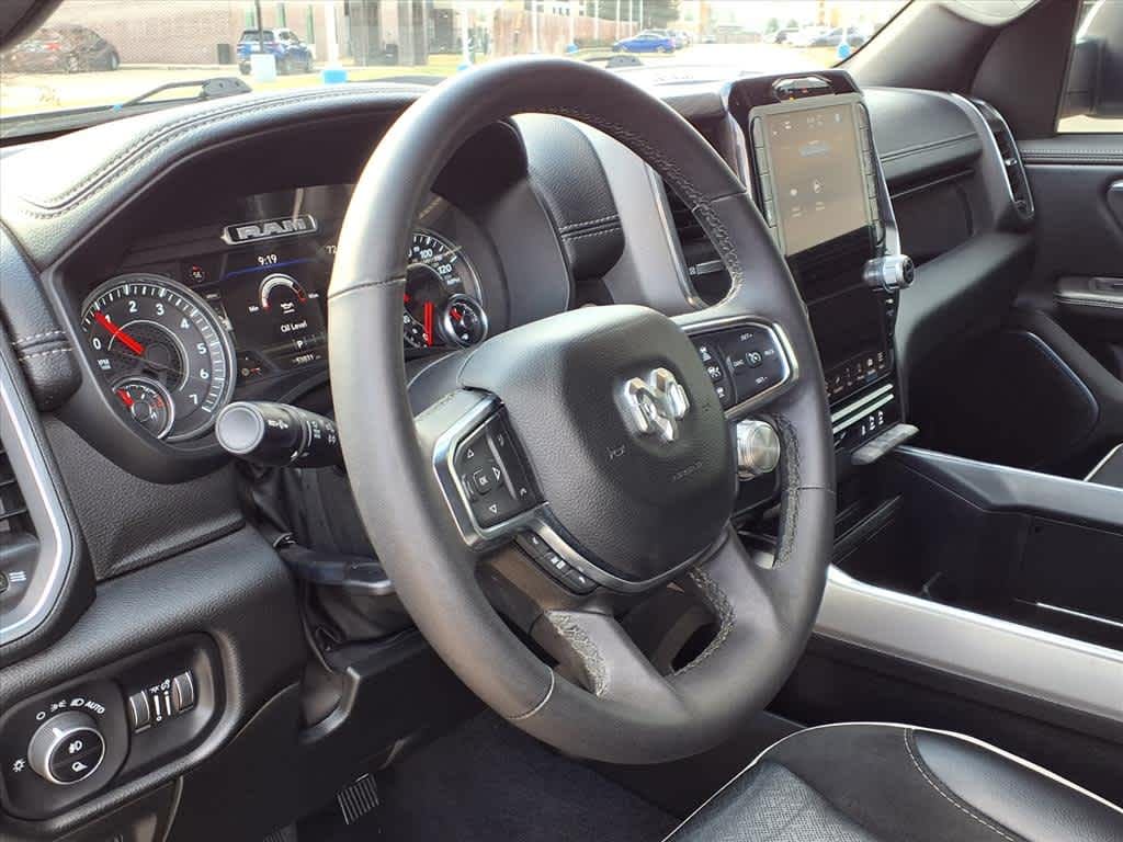 10 Speakers, 3 Rear Seat Head Restraints, 3.55 Rear Axle Ratio, 4 Way Front Headrests, 4-Wheel Disc Brakes, 4G LTE Wi-Fi Hot Spot, ABS brakes, Air Conditioning, Alloy wheels, AM/FM radio: SiriusXM with 360L, Apple CarPlay, Apple CarPlay/Android Auto, Audio memory, Auto High-beam Headlights, Auto Power-Folding Mirrors, Auto-dimming door mirrors, Auto-Dimming Exterior Driver Mirror, Auto-dimming Rear-View mirror, Automatic temperature control, Brake assist, Bumpers: chrome, Chrome Exterior Mirrors, Compass, Connected Travel & Traffic Services, Connectivity - US/Canada, Convex Wide-Angle Exterior Mirror Insert, Delay-off headlights, Driver door bin, Driver Seat Memory, Driver vanity mirror, Dual front impact airbags, Dual front side impact airbags, Electronic Stability Control, Exterior Mirrors Courtesy Lamps, Exterior Mirrors w/Heating Element, Exterior Mirrors w/Memory, Exterior Mirrors w/Supplemental Signals, Front anti-roll bar, Front Center Armrest w/Storage, Front dual zone A/C, Front fog lights, Front License Plate Bracket, Front reading lights, Front Seat Back Map Pockets, Front wheel independent suspension, Fully automatic headlights, Garage door transmitter, Google Android Auto, GPS Antenna Input, GPS Navigation, HD Radio, Heated door mirrors, Heated Front Seats, Heated front seats, Heated rear seats, Heated Steering Wheel, Heated steering wheel, Illuminated entry, Integrated Voice Command w/Bluetooth, Laramie Level 1 Equipment Group, Leather steering wheel, Leather Trim 40/20/40 Bench Seat, Low tire pressure warning, Manufacturers Statement of Origin, Memory seat, Navigation System, Occupant sensing airbag, Outside temperature display, Overhead airbag, Overhead console, Panic alarm, ParkView Rear Back-Up Camera, Passenger door bin, Passenger vanity mirror, Power 2-Way Driver Lumbar Adjust, Power 2-Way Passenger Lumbar Adjust, Power Adjust 8-Way Front Passenger Seat, Power door mirrors, Power driver seat, Power passenger seat, Power steering, Power windows, Quick Order Package 21H Laramie, Radio data system, Radio: Uconnect 5 Nav w/12.0 Display, Rain Sensitive Windshield Wipers, RAM Grille Badge - Chrome, Rear anti-roll bar, Rear reading lights, Rear seat center armrest, Rear step bumper, Remote keyless entry, Remote Tailgate Release, Security system, SiriusXM w/360L, Speed control, Split folding rear seat, Steering wheel mounted audio controls, Tachometer, Telescoping steering wheel, Tilt steering wheel, Traction control, Trip computer, Turn signal indicator mirrors, USB Host Flip, Variably intermittent wipers, Ventilated Front Seats, Ventilated front seats, Voltmeter, Wheels: 20 x 9 Premium Paint/Polish.