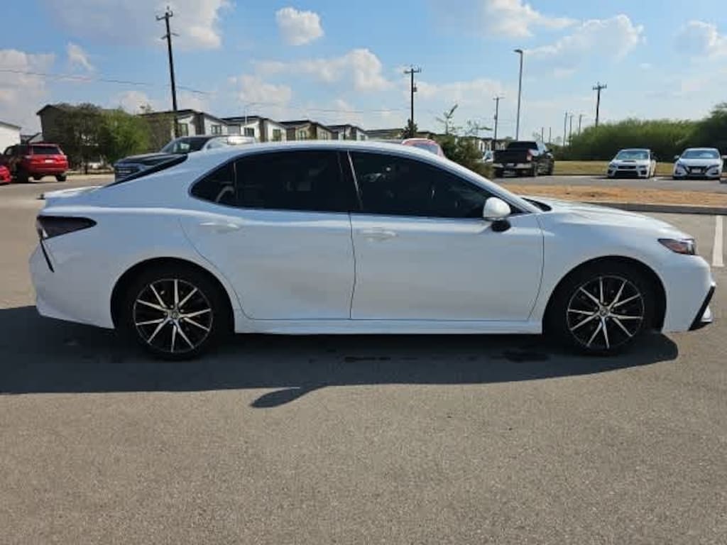 Camry SE, 4D Sedan, 2.5L I4 DOHC 16V, 8-Speed Automatic, FWD, White, Black w/Fabric Seat Trim w/Sport SofTex, ABS brakes, Active Cruise Control, Alloy wheels, Electronic Stability Control, Front dual zone A/C, Heated door mirrors, Illuminated entry, Low tire pressure warning, Remote keyless entry, Traction control.