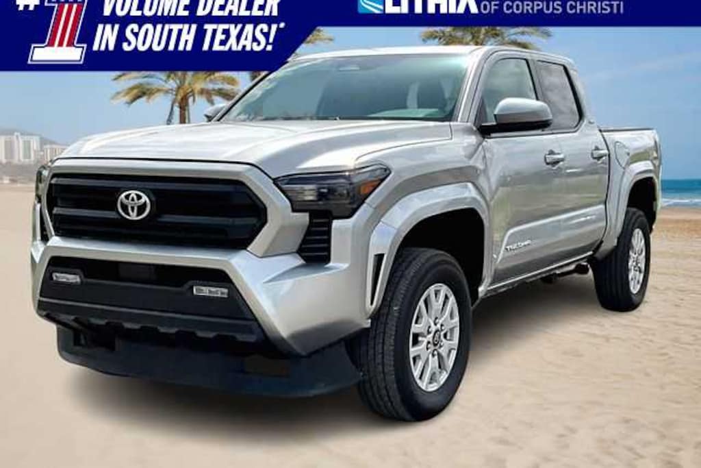 FRESH OIL CHANGE, 3.583 Axle Ratio, 4-Wheel Disc Brakes, 6 Speakers, ABS brakes, Air Conditioning, Alloy wheels, AM/FM radio: SiriusXM, Anti-whiplash front head restraints, Apple CarPlay/Android Auto, Auto High-beam Headlights, Auto-dimming Rear-View mirror, Brake assist, Bumpers: body-color, Driver door bin, Dual front impact airbags, Dual front side impact airbags, Electronic Stability Control, Emergency communication system: Safety Connect (1-year trial), Exterior Parking Camera Rear, Fabric Seat Trim (FF), Four wheel independent suspension, Front anti-roll bar, Front Bucket Seats, Front Center Armrest, Front fog lights, Front reading lights, Fully automatic headlights, Heated door mirrors, Illuminated entry, Knee airbag, Low tire pressure warning, Occupant sensing airbag, Outside temperature display, Overhead airbag, Overhead console, Panic alarm, Passenger door bin, Power door mirrors, Power steering, Power windows, Radio: 8 Toyota Audio Multimedia, Rear step bumper, Rear window defroster, Remote keyless entry, Speed control, Speed-sensing steering, Split folding rear seat, Steering wheel mounted audio controls, Tachometer, Telescoping steering wheel, Tilt steering wheel, Traction control, Trip computer, Variably intermittent wipers, Wheels: 17 Styled Alloy. 21/26 City/Highway MPG Celestial Silver Metallic 2024 Toyota Tacoma SR5 RWD 8-Speed Automatic 2.4L 4-Cylinder